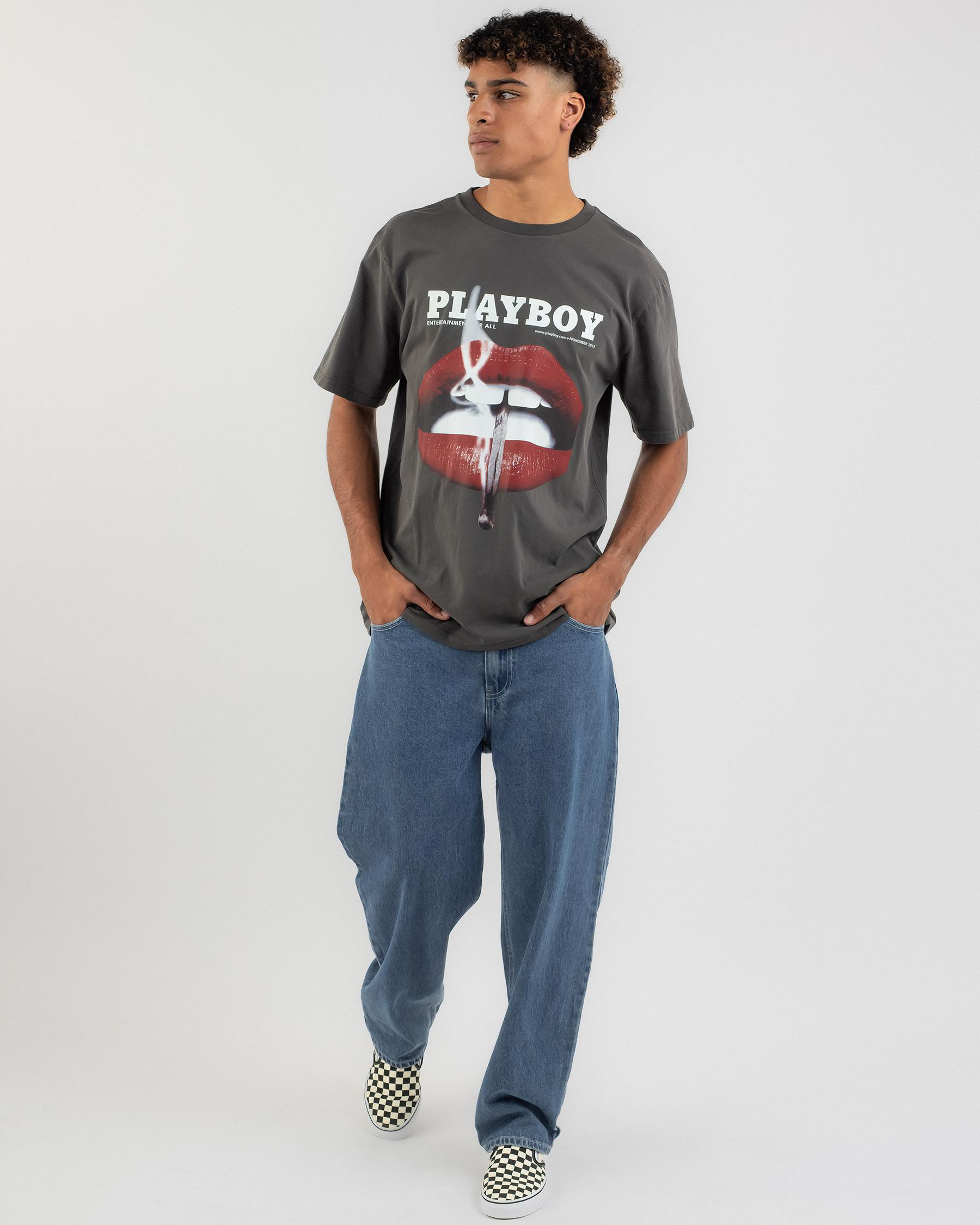This Playboy Lips T-Shirt in washed black is perfect for adding a touch of edgy style to your wardrobe.