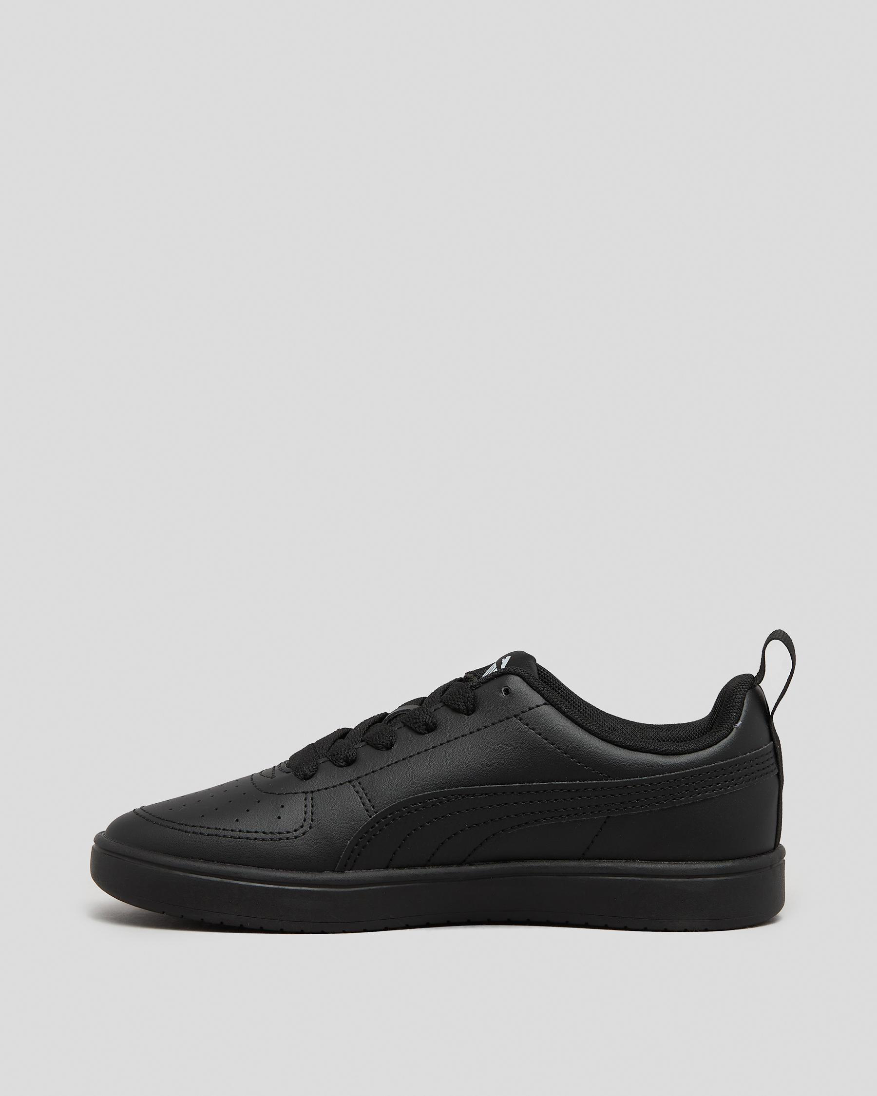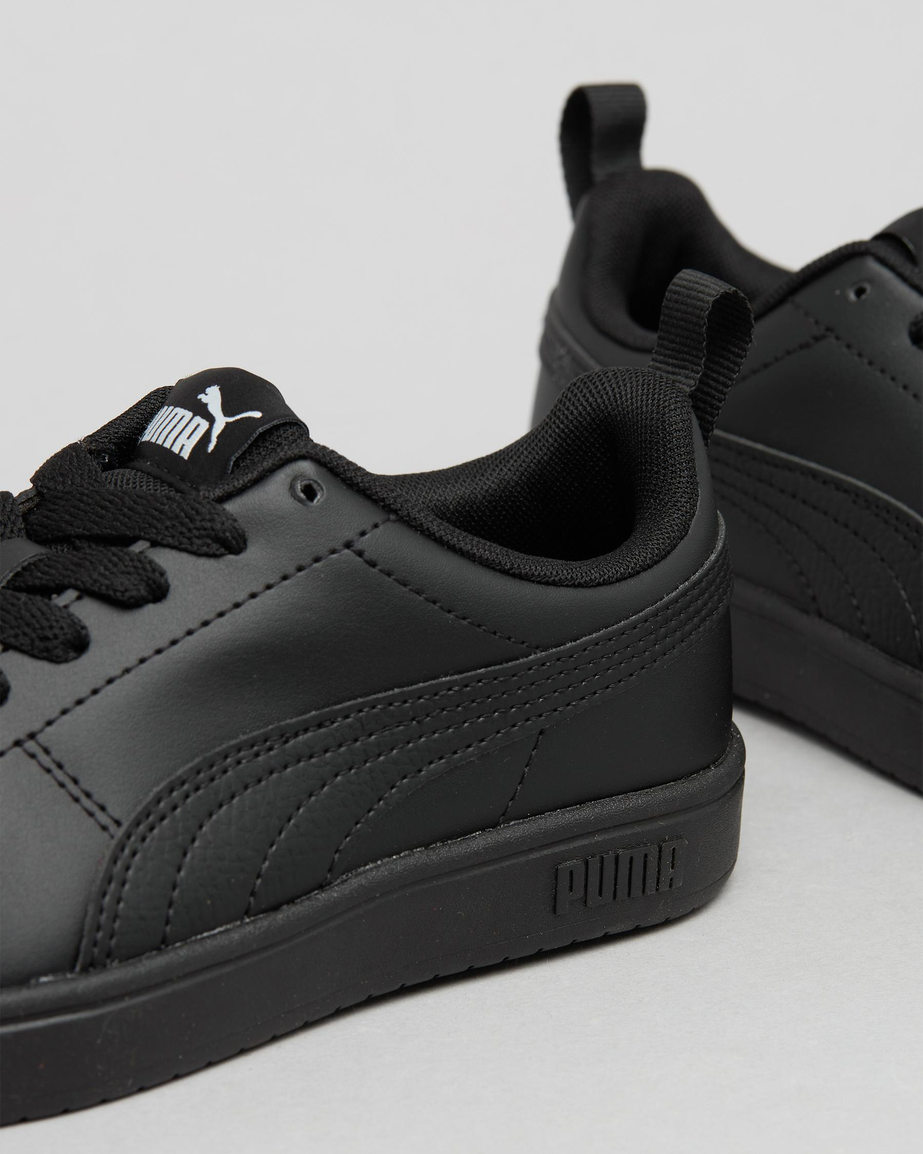 The Puma Boys' Rickie Shoes in Puma Black are sleek and versatile, perfect for any young athlete or fashion-conscious kid.