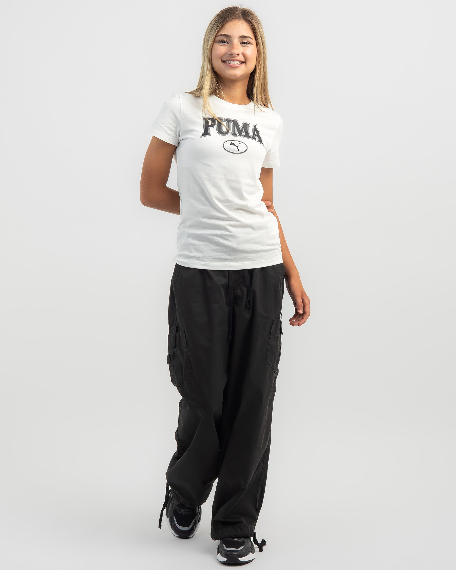 The Puma Girls' Squad Graphic T-Shirt in Warm White is a stylish and versatile addition to any girl's wardrobe.