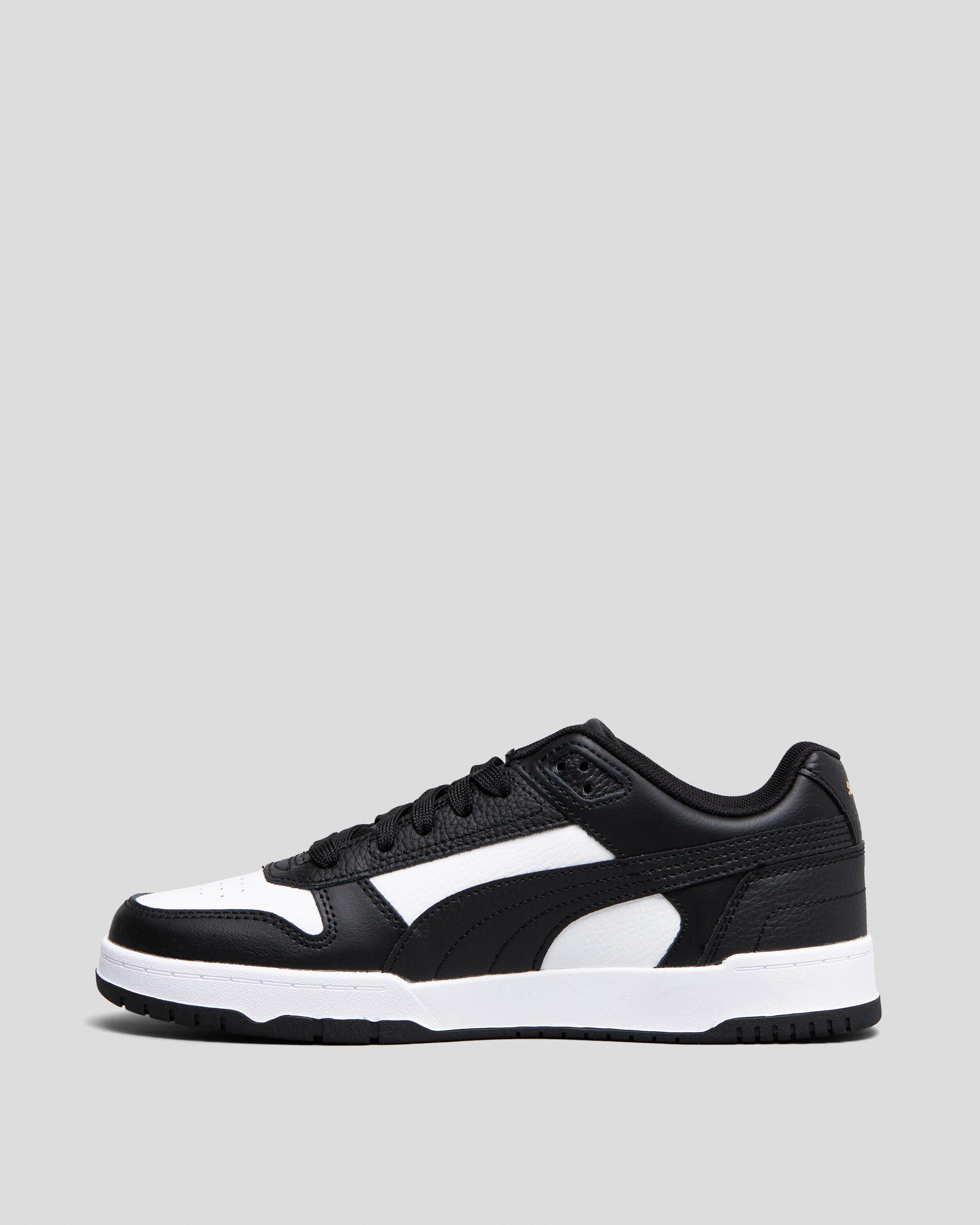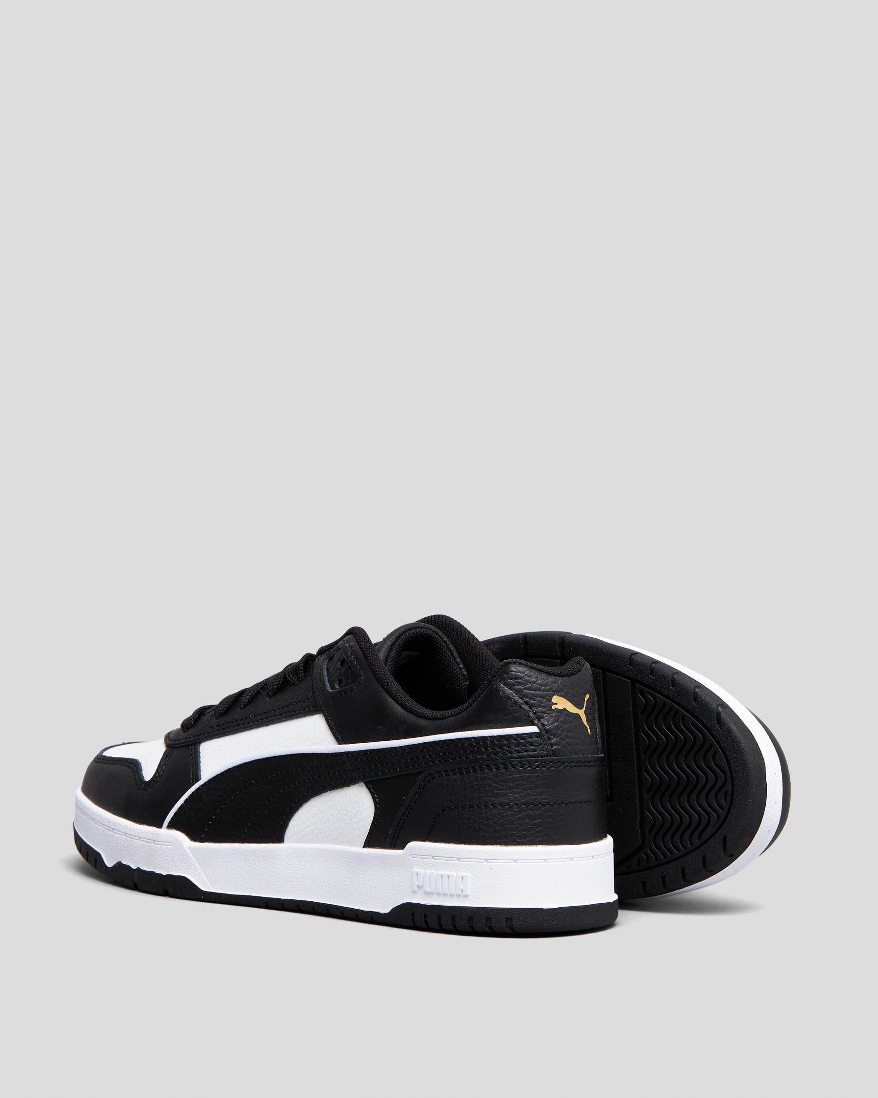 Embrace sporty style with the Puma Womens RBD Game Low Shoes in sleek Puma Black. These shoes are perfect for everyday wear.