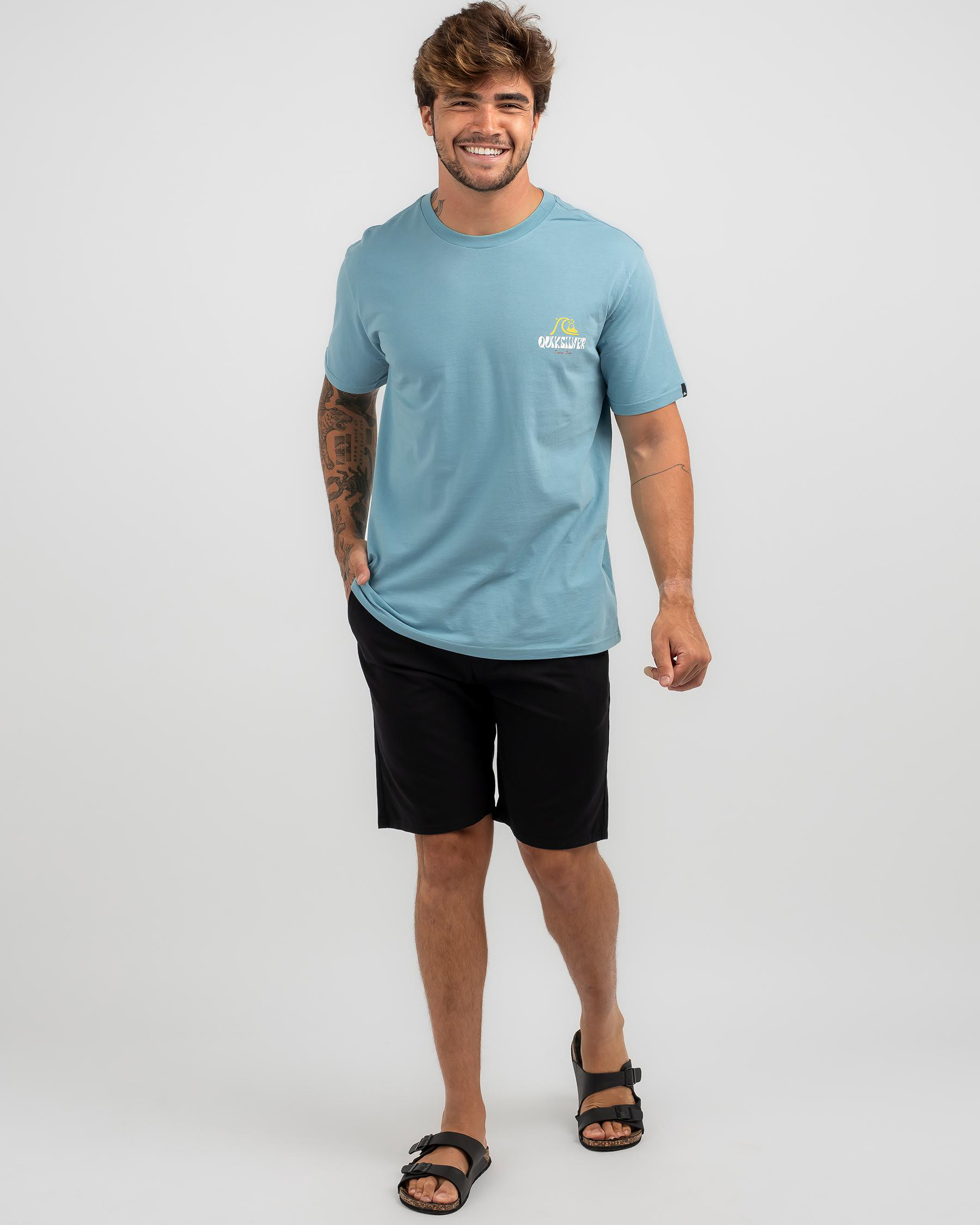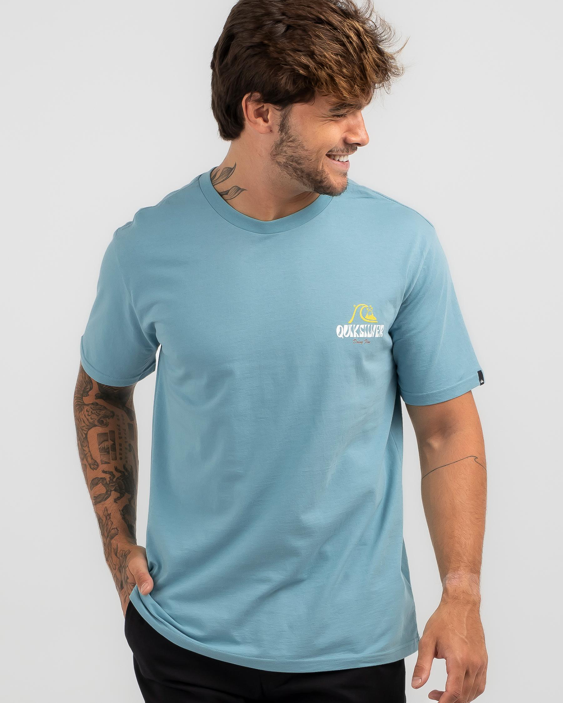 Shop the Quiksilver Above The Clouds T-Shirt in Reef Waters for a laid-back look. This tee in a cool blue hue is perfect for casual days out.