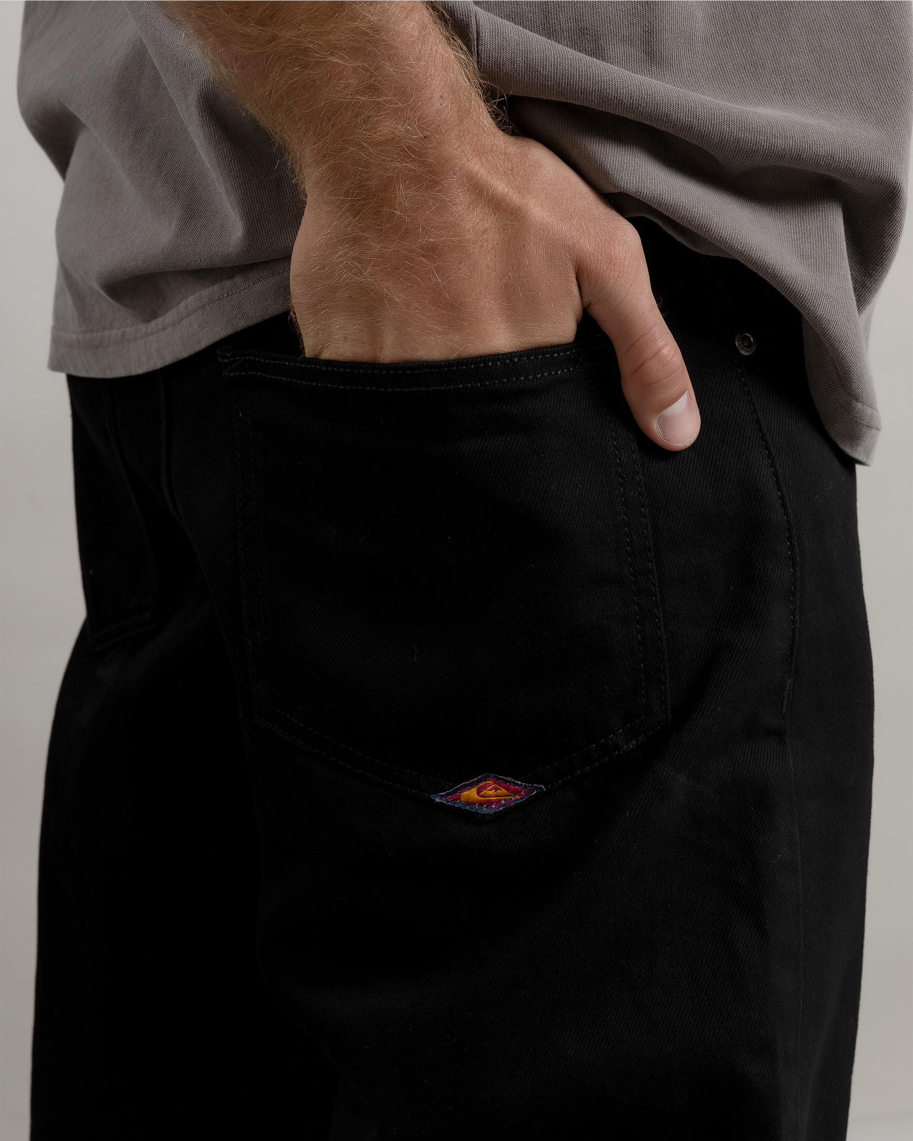 The Quiksilver Baggy Black Jeans in sleek black are a versatile wardrobe staple, perfect for effortless style on any occasion.