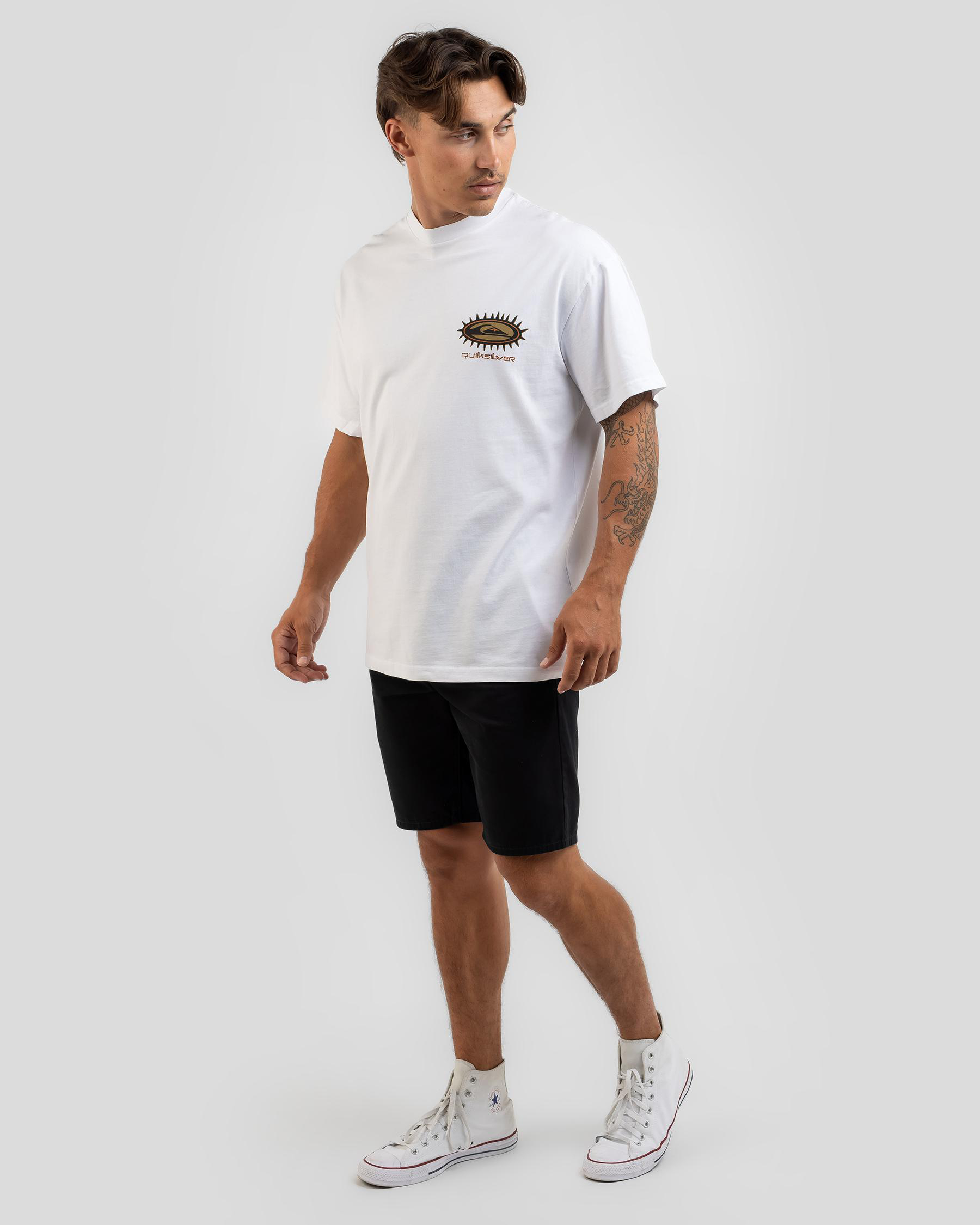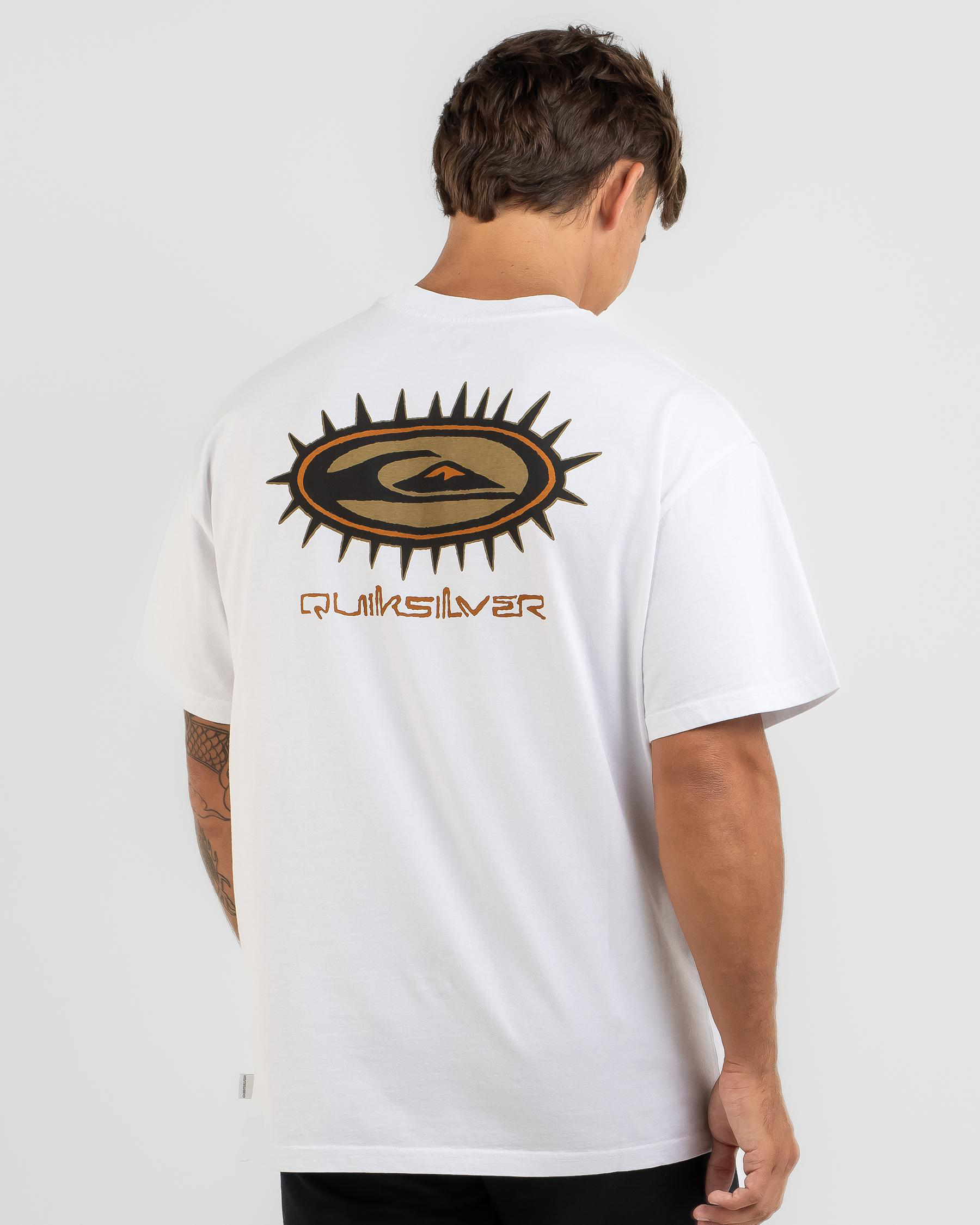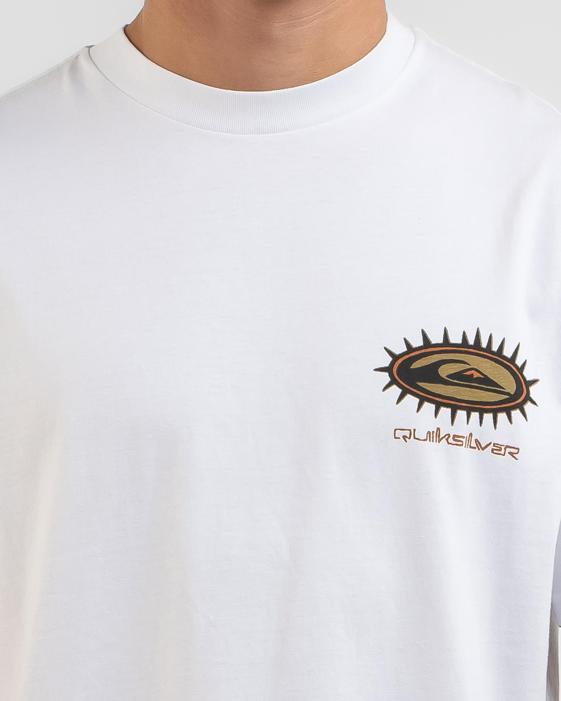 The Quiksilver Mongrel Spikey T-Shirt in Grape Leaf is a vibrant addition to your wardrobe, featuring a unique spikey design.