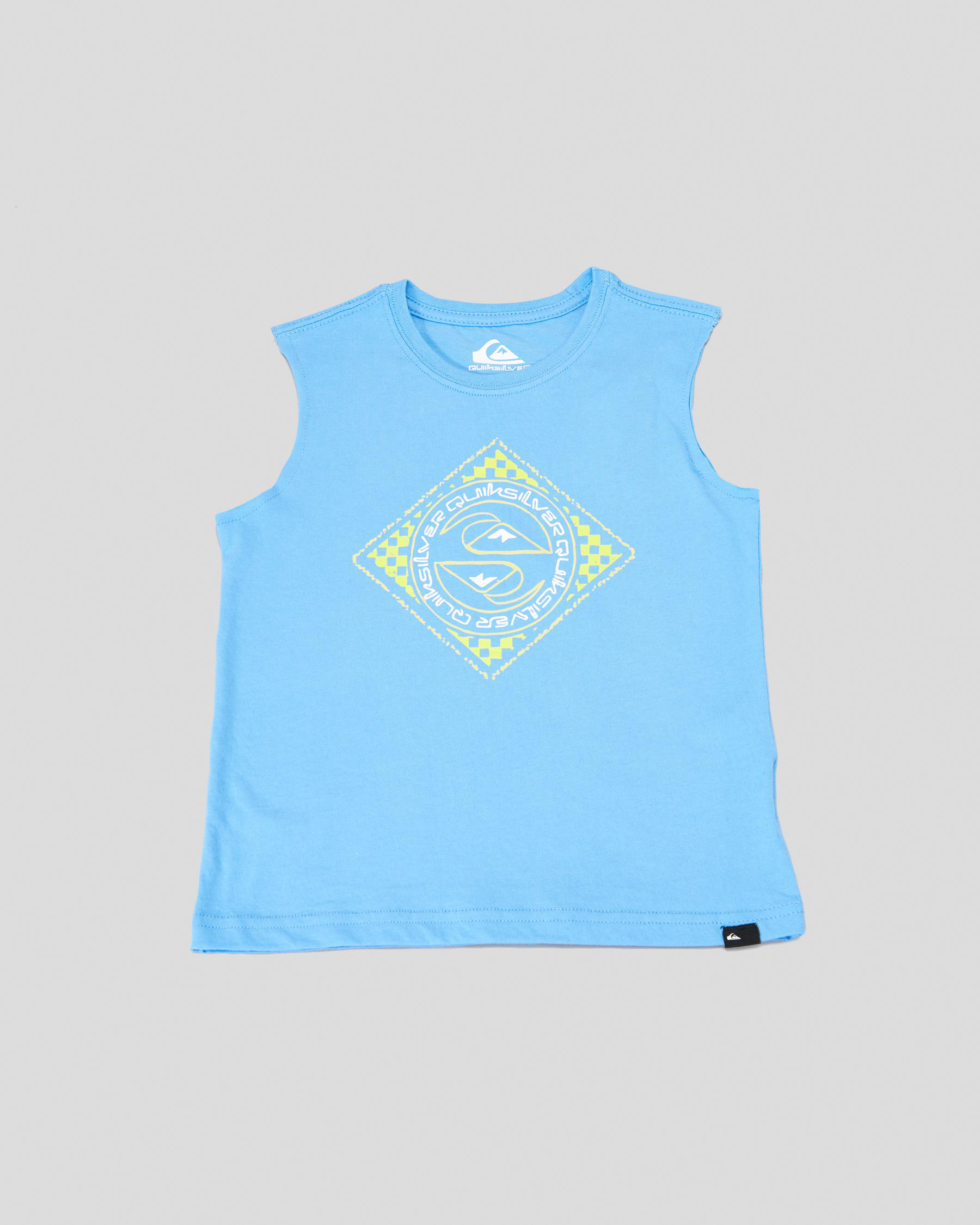 The Quiksilver Toddlers' Splitting Hairs Muscle Tank in azure blue is perfect for keeping little ones cool and stylish on hot summer days.