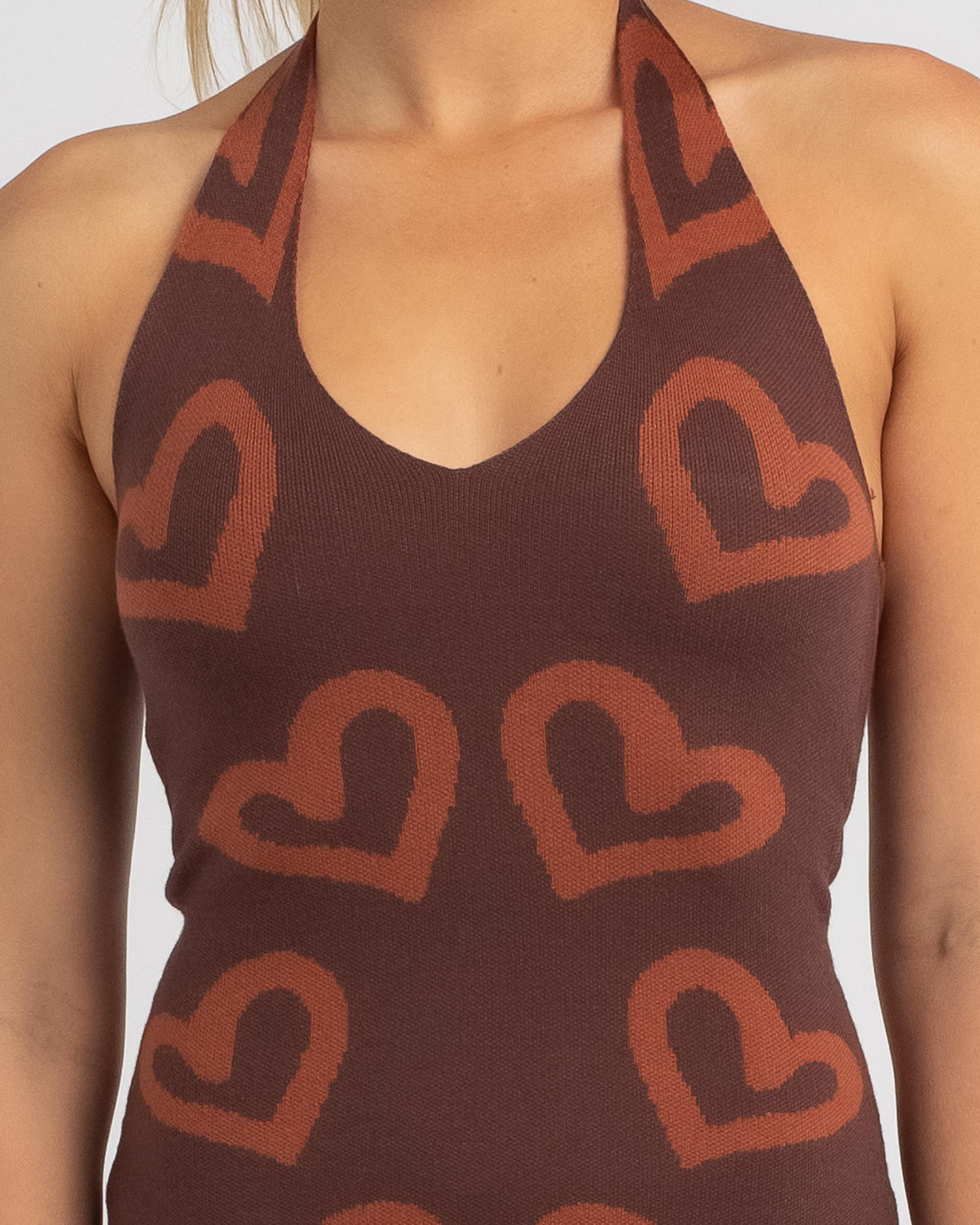 Get ready to turn heads in the Red Berry Sweetheart Knit Dress in rich chocolate. This stunning dress is perfect for any occasion, adding a touch of sweetness to your look.