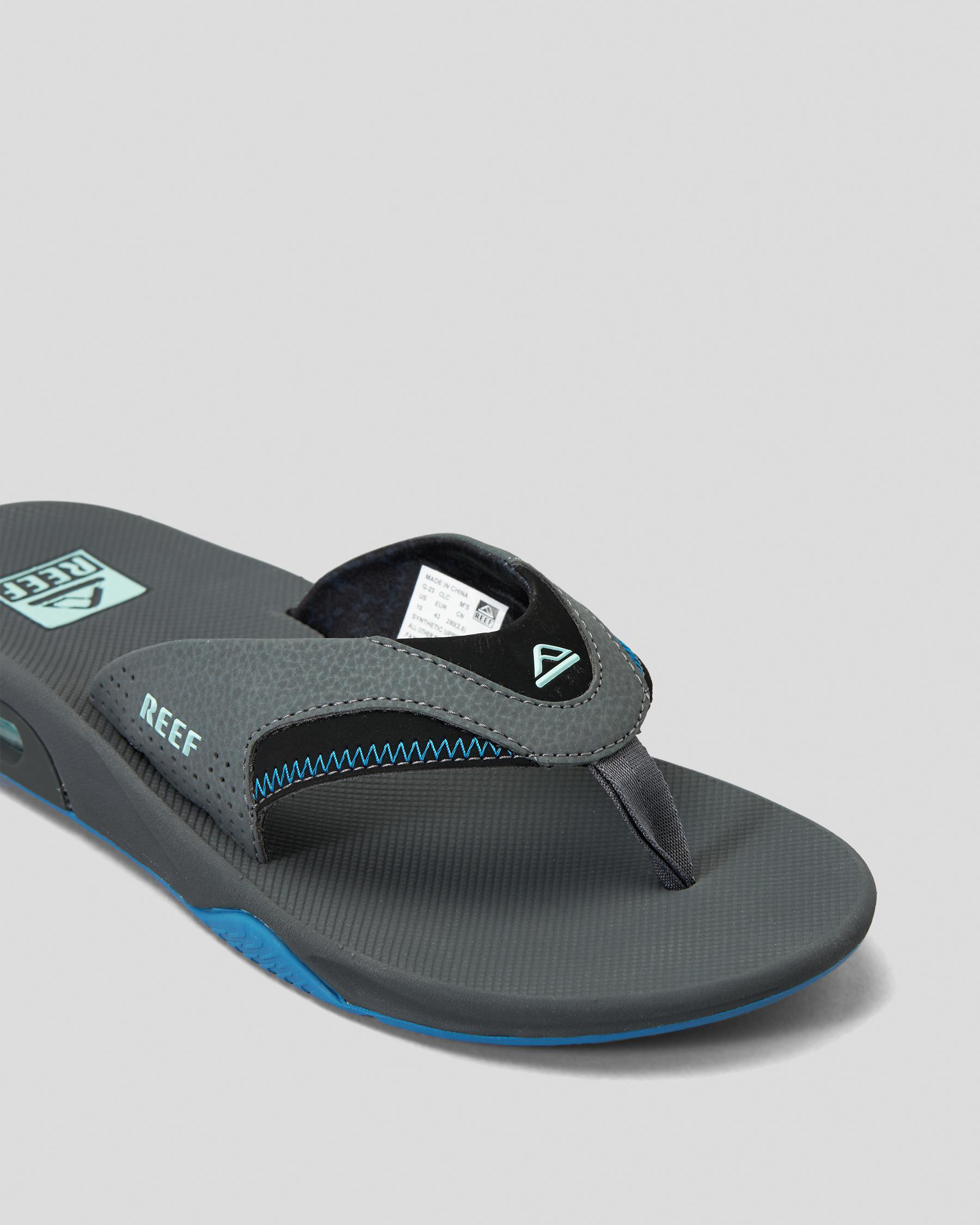 The Reef Fanning Sandal in Gunmetal oozes style and sophistication with its sleek design and ocean-inspired colour. A must-have for any beach lover.