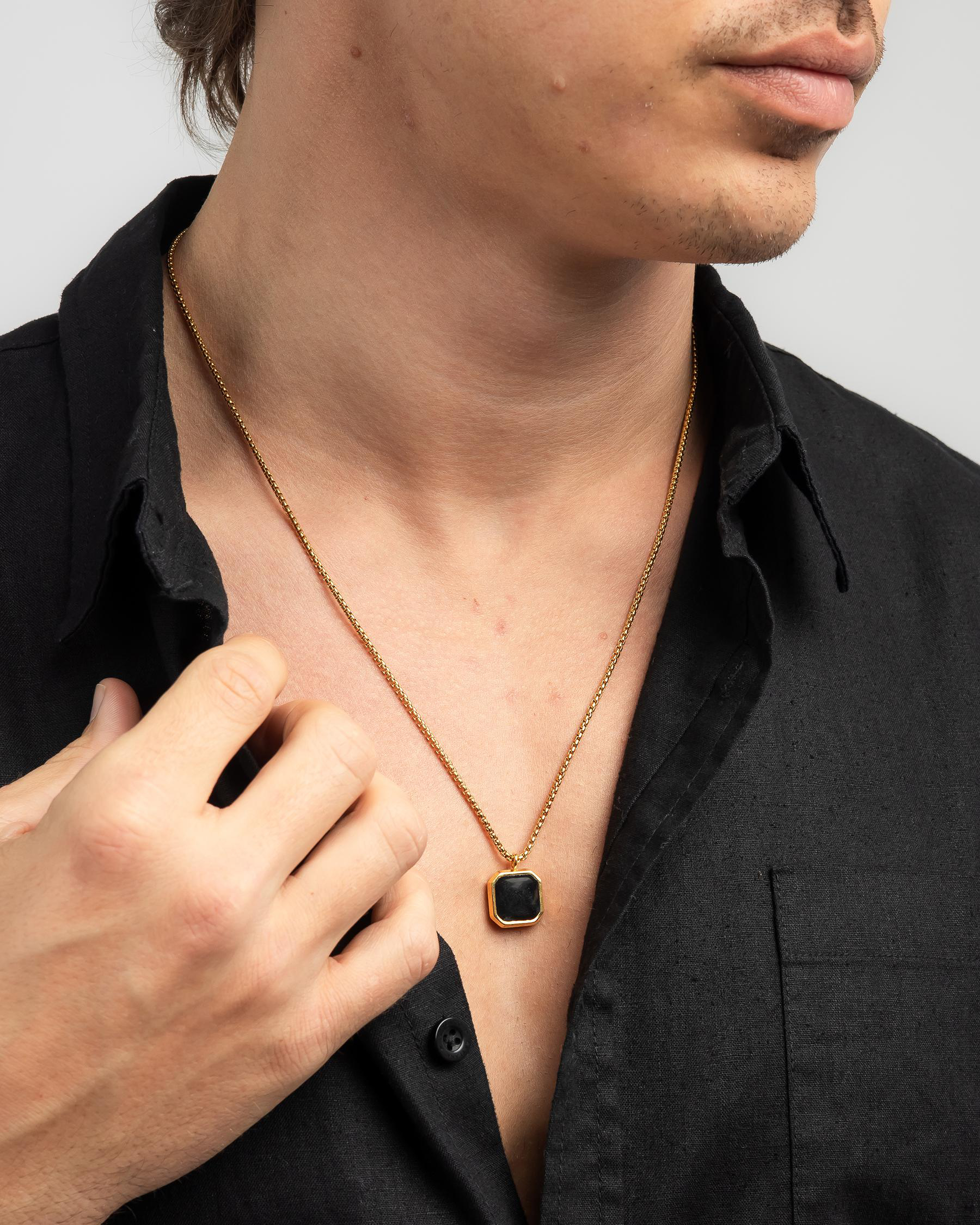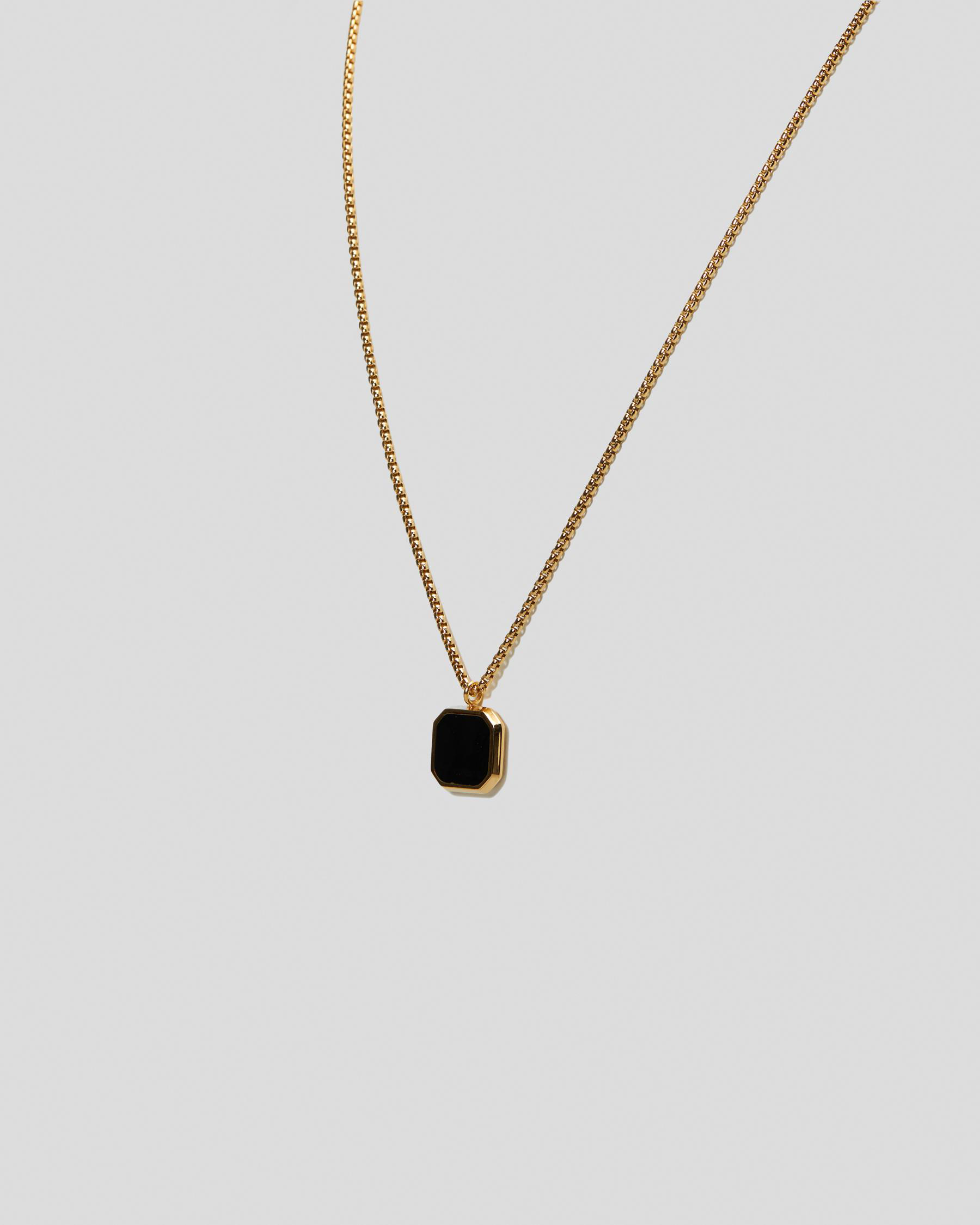 The REPUBLIK Onyx Pendant Necklace in Gold adds a touch of elegance to any outfit.