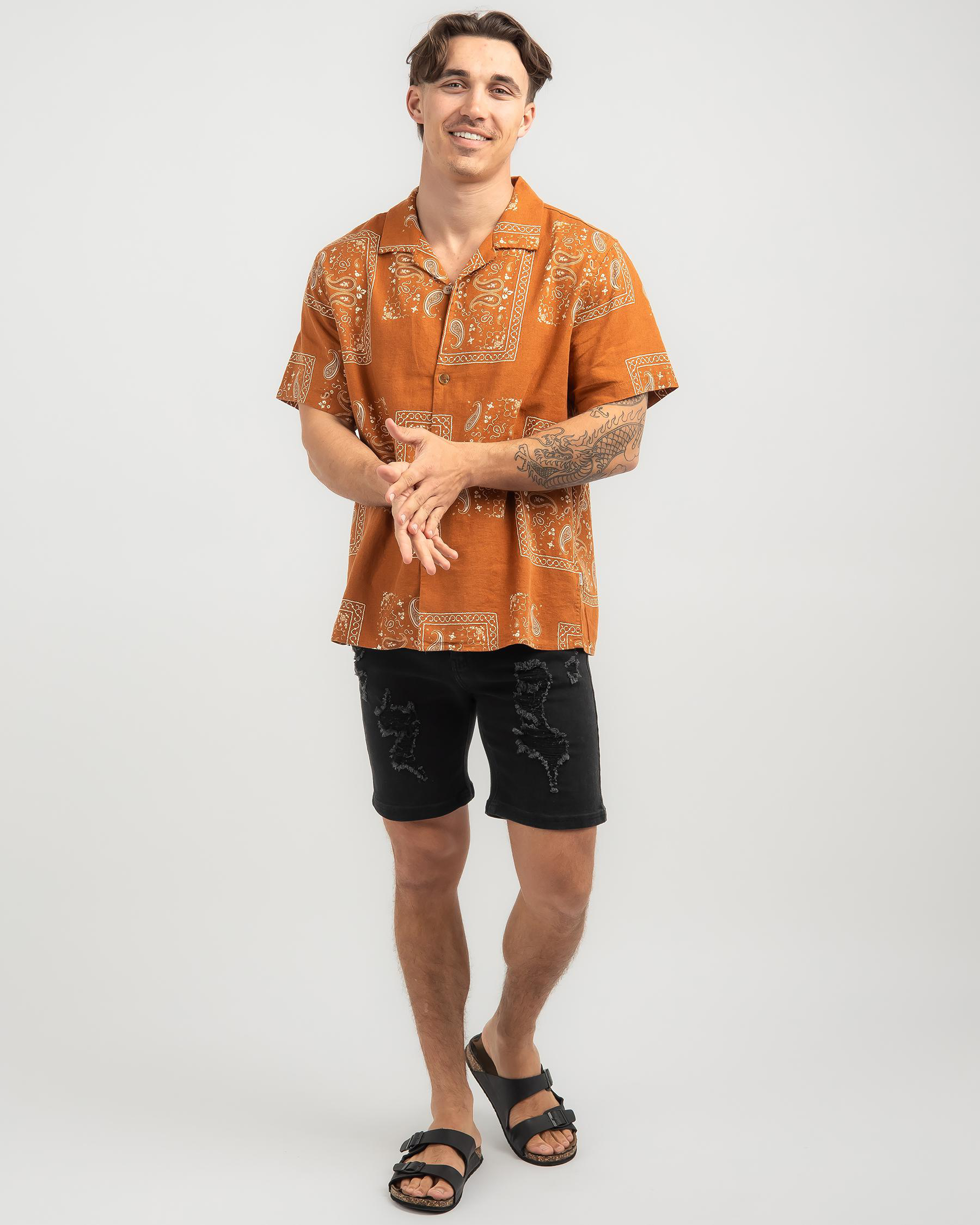 The Rhythm Border Short Sleeve Shirt in Cedar is a stylish choice for any occasion. The rich cedar color adds a pop of warmth to your wardrobe.