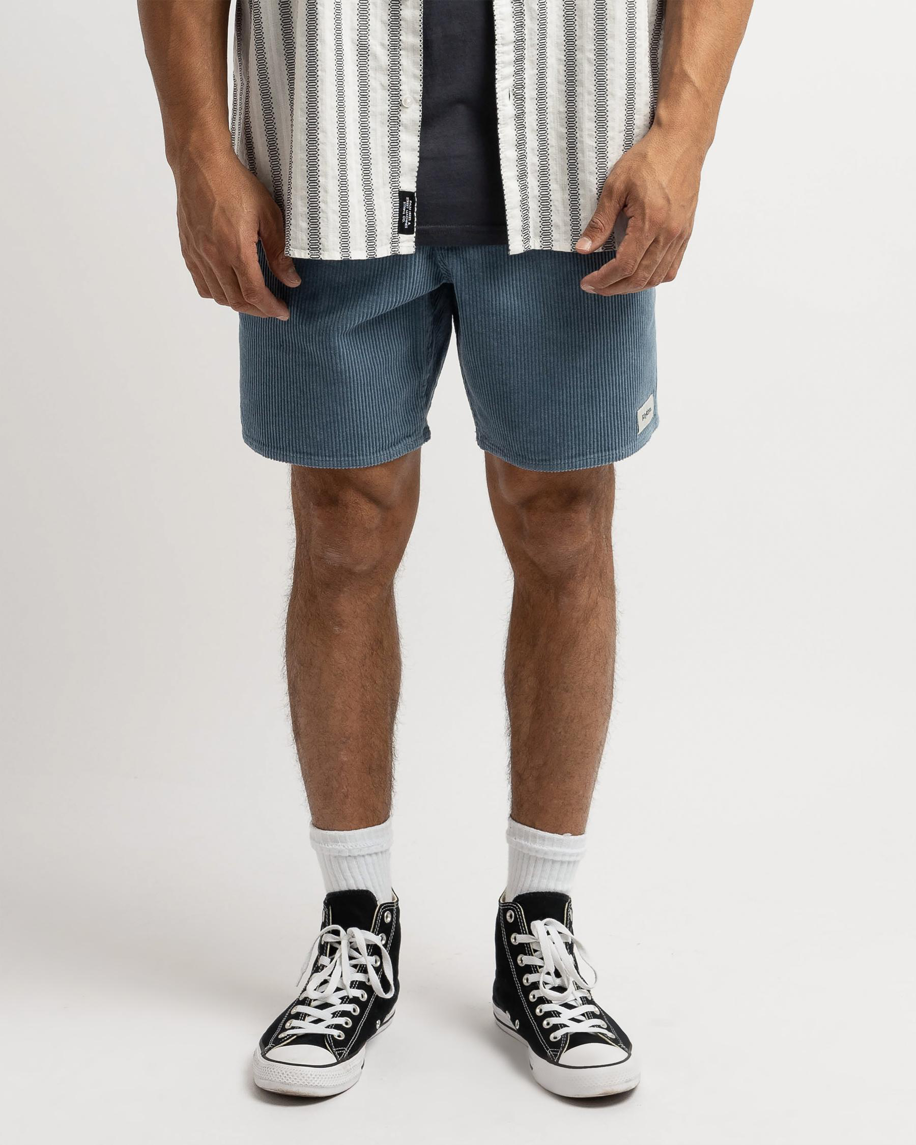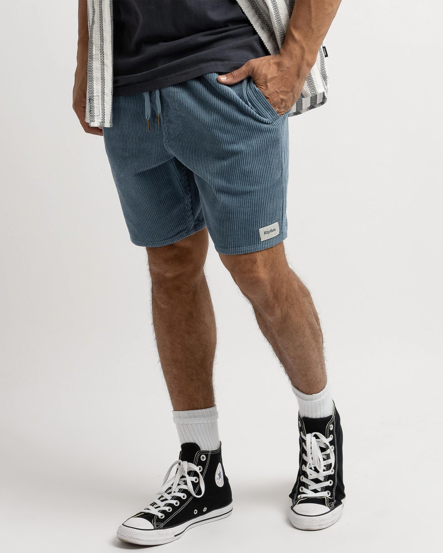 The Rhythm Cord Jam Walk Shorts in mineral blue offer a relaxed fit and versatile style for all your summer adventures.
