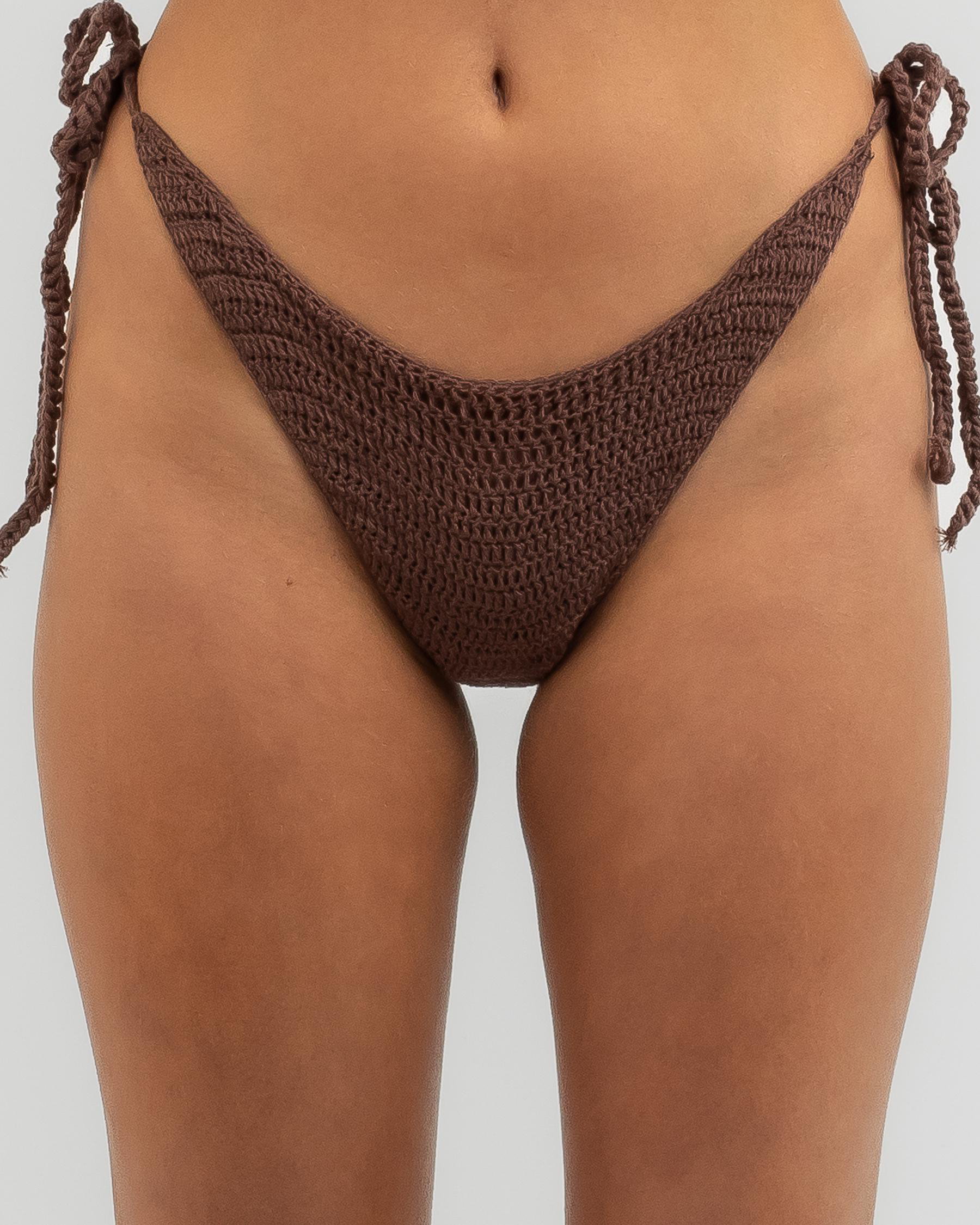 Womens Crochet High Cut Tie Side Bikini Bottom