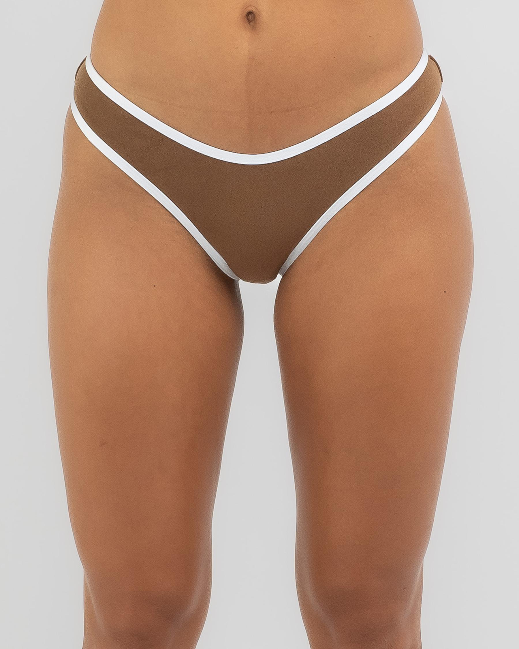 Indulge in the rich and luxurious Rhythm Terry High Cut Bikini Bottom in Chocolate. Perfect for a chic beach look.
