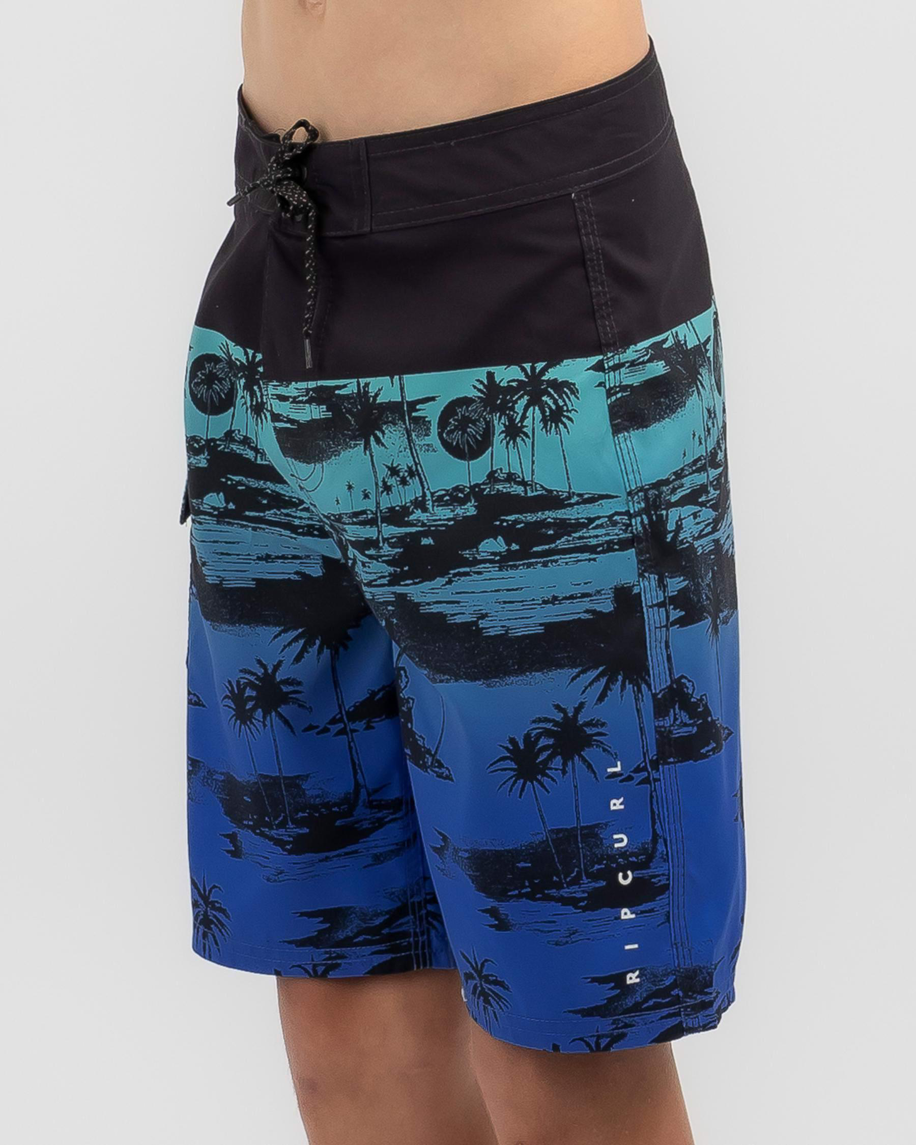 The Rip Curl Boys' Leslie Island Board Shorts in Black are perfect for your little surfer, featuring a sleek design and comfortable fit.