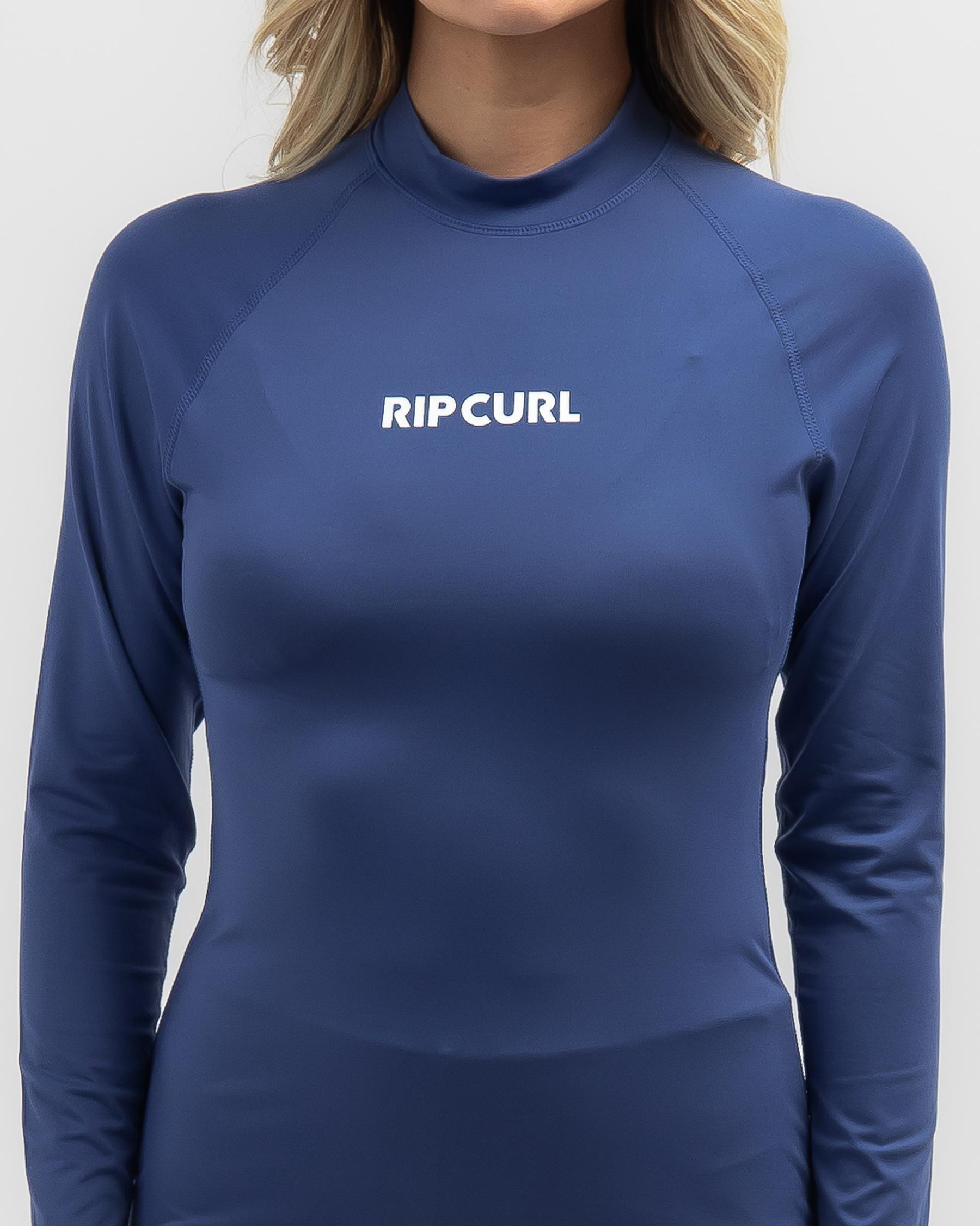 The Rip Curl Classic Surf Long Sleeve UPF Rash Vest in vintage navy features a timeless design for ultimate surf style.