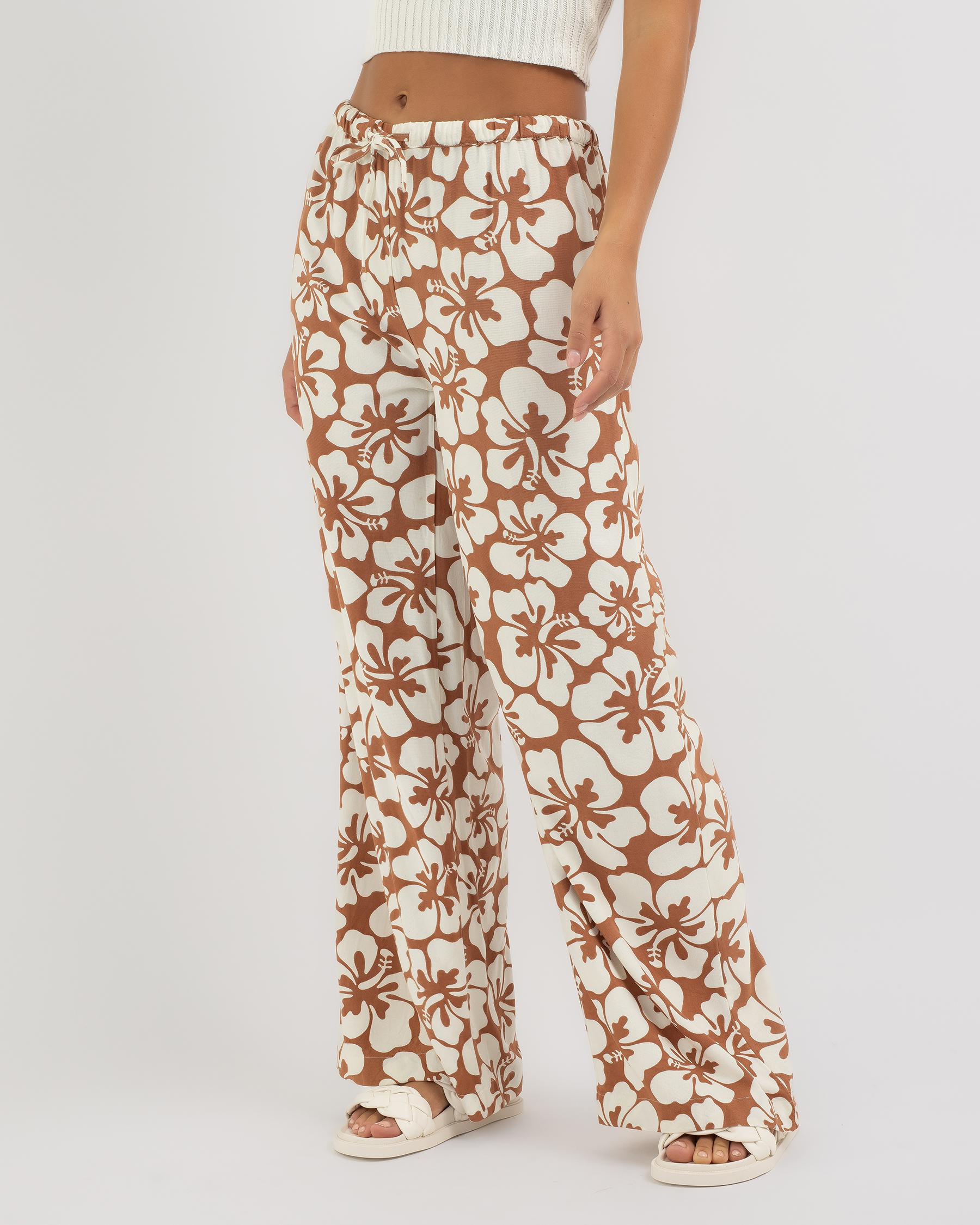 These Rip Curl Hibiscus Heat beach pants in brown are perfect for soaking up the sun in style. Stay comfortable and chic at the beach or by the pool.