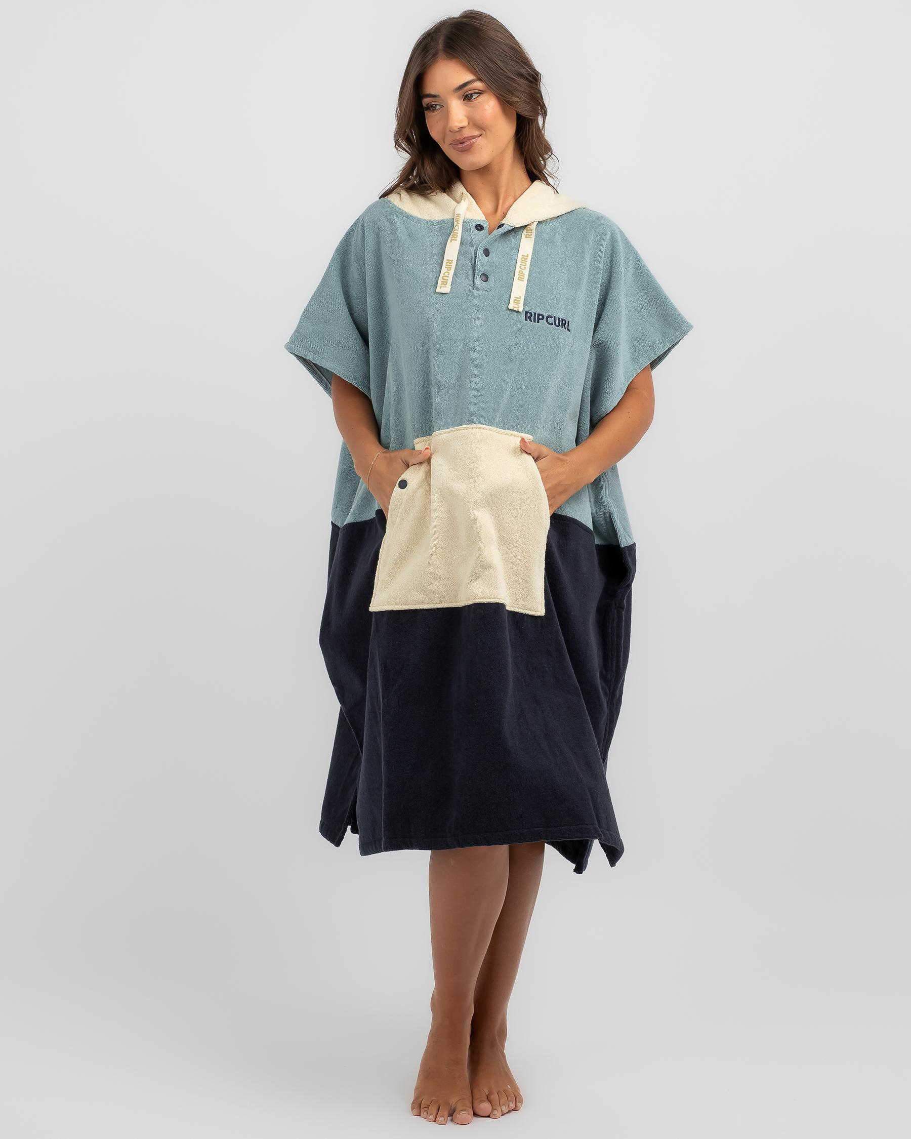 Stay cozy and stylish at the beach with Rip Curl's navy Premium Surf Hooded Towel. Perfect for post-surf sessions or lounging by the water.