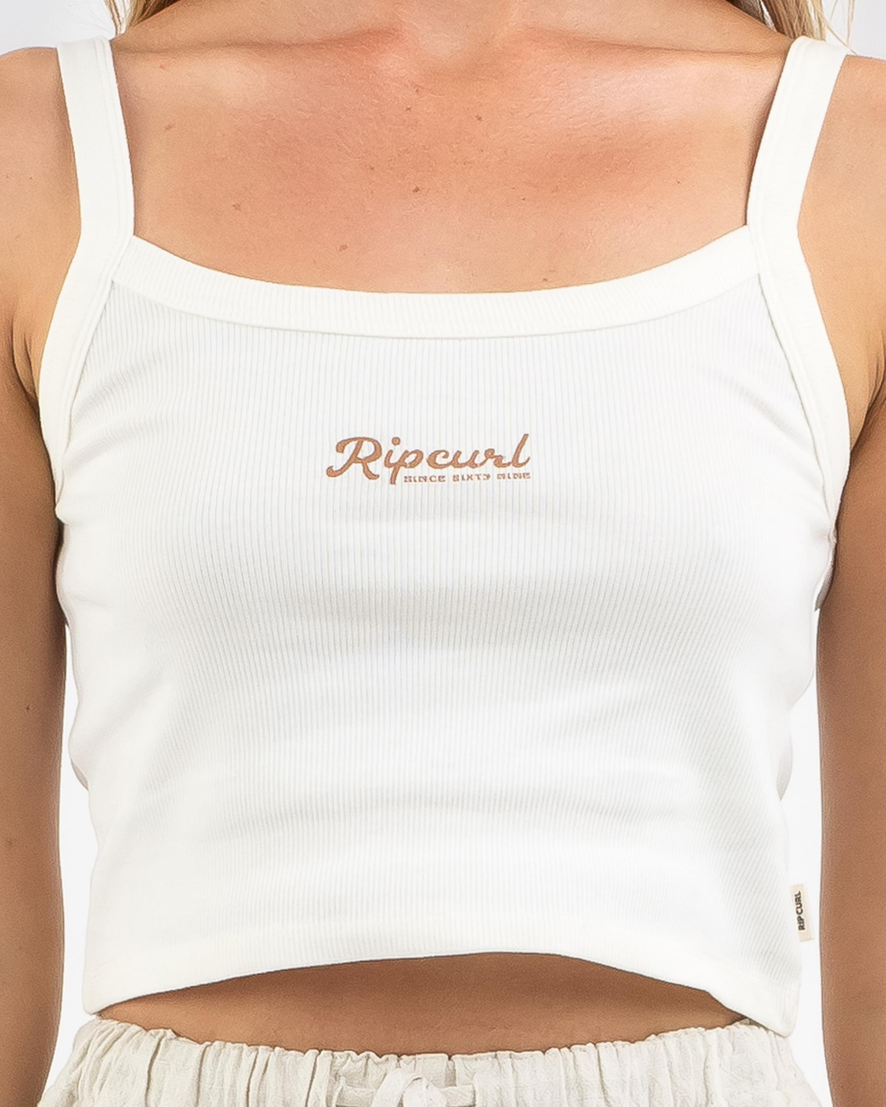 The Rip Curl Retro Rib Tank Top in Bone is a versatile staple for any wardrobe, featuring a classic ribbed design in a chic neutral hue.