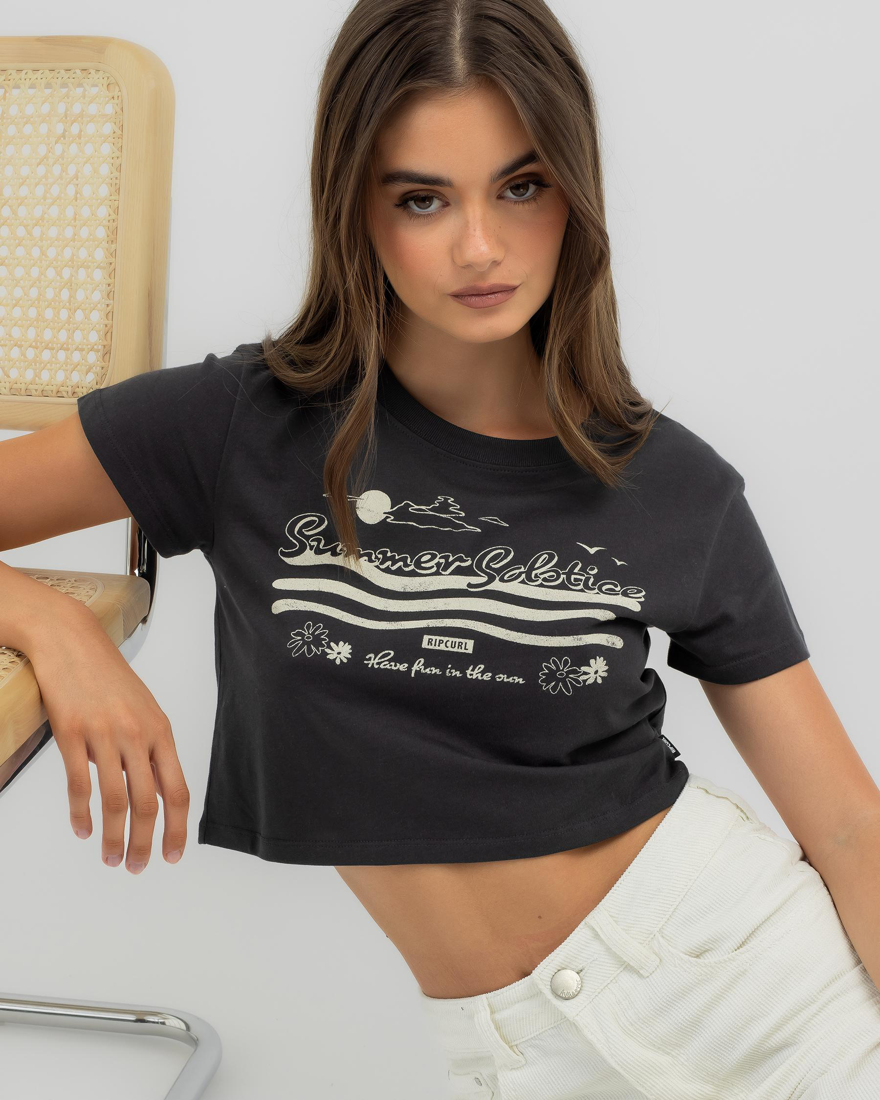 The Rip Curl Summer Solstice Baby Tee in Washed Black is a must-have for your summer wardrobe. Perfect for laid-back days and effortless style.