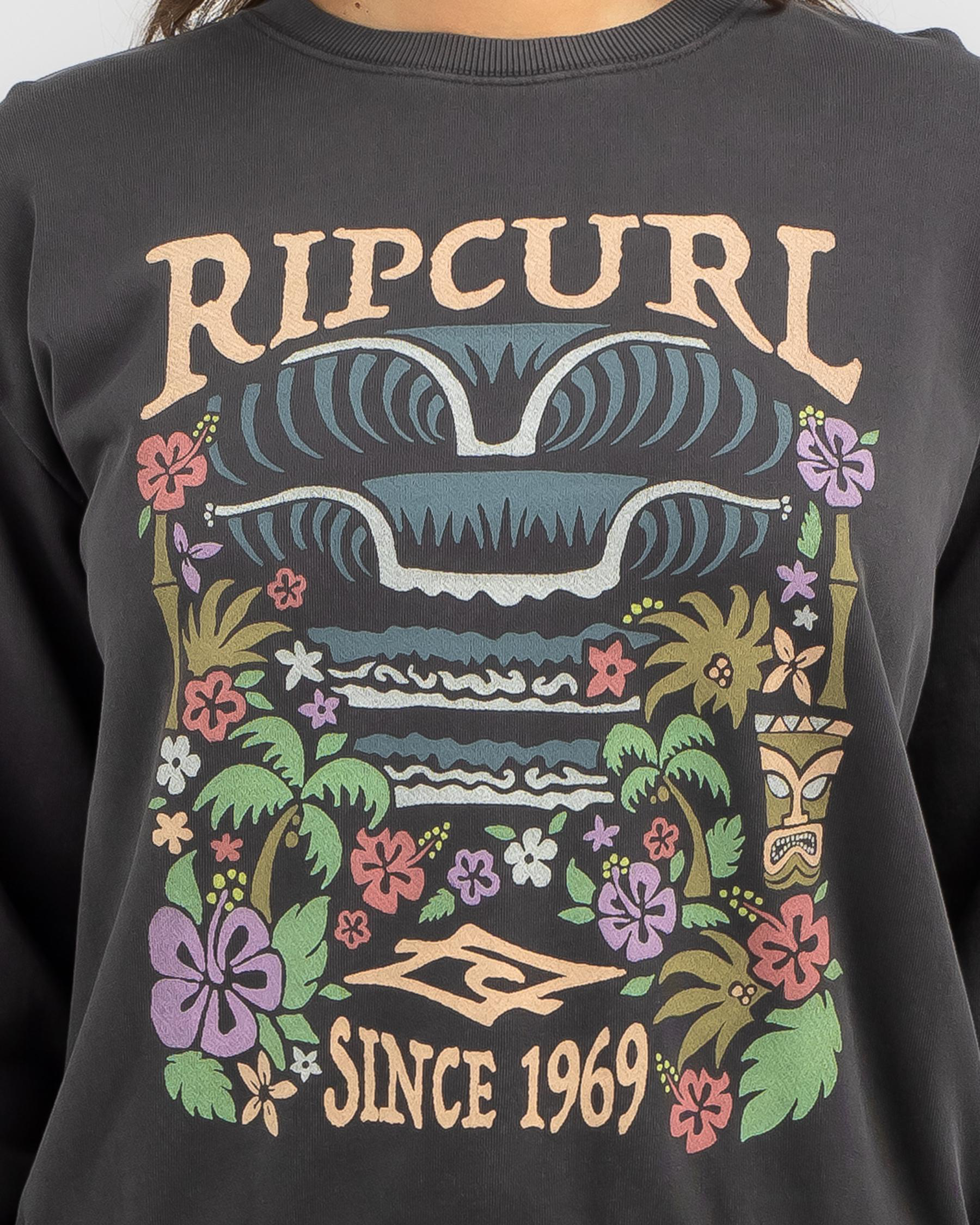 Stay on trend with the Rip Curl Tiki Tropic Crewneck Sweatshirt in washed black. This cozy sweatshirt is perfect for effortless street style.