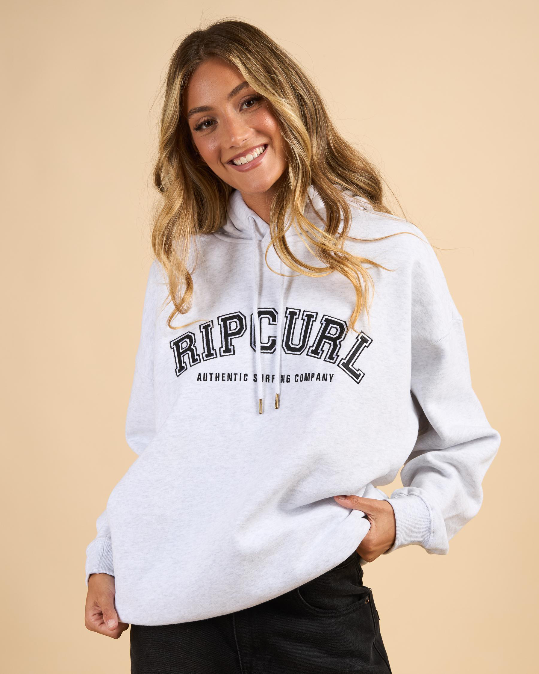 Stay cozy in the Rip Curl Varsity Hoodie in grey marle. This versatile hoodie is perfect for everyday wear and pairs effortlessly with any outfit.