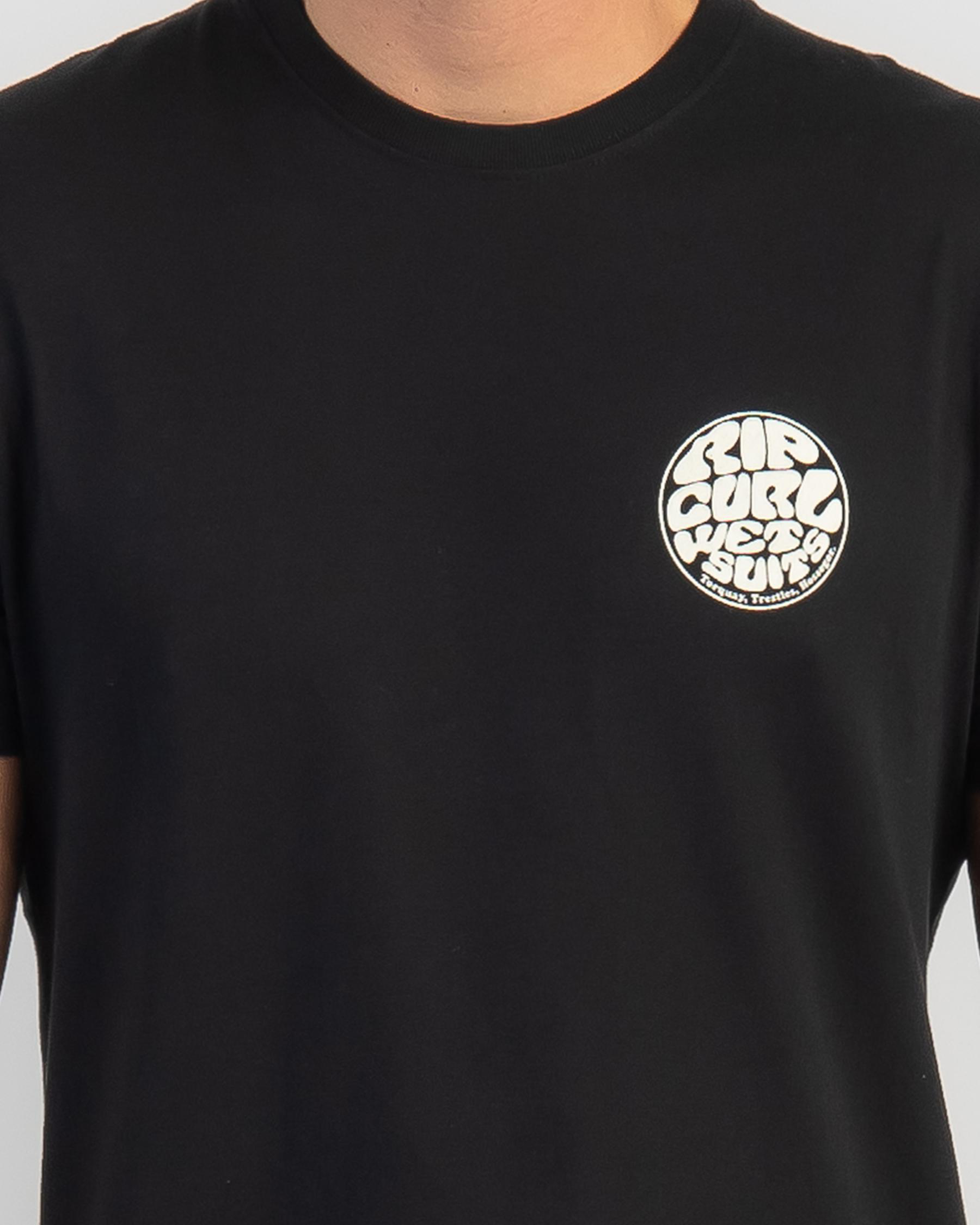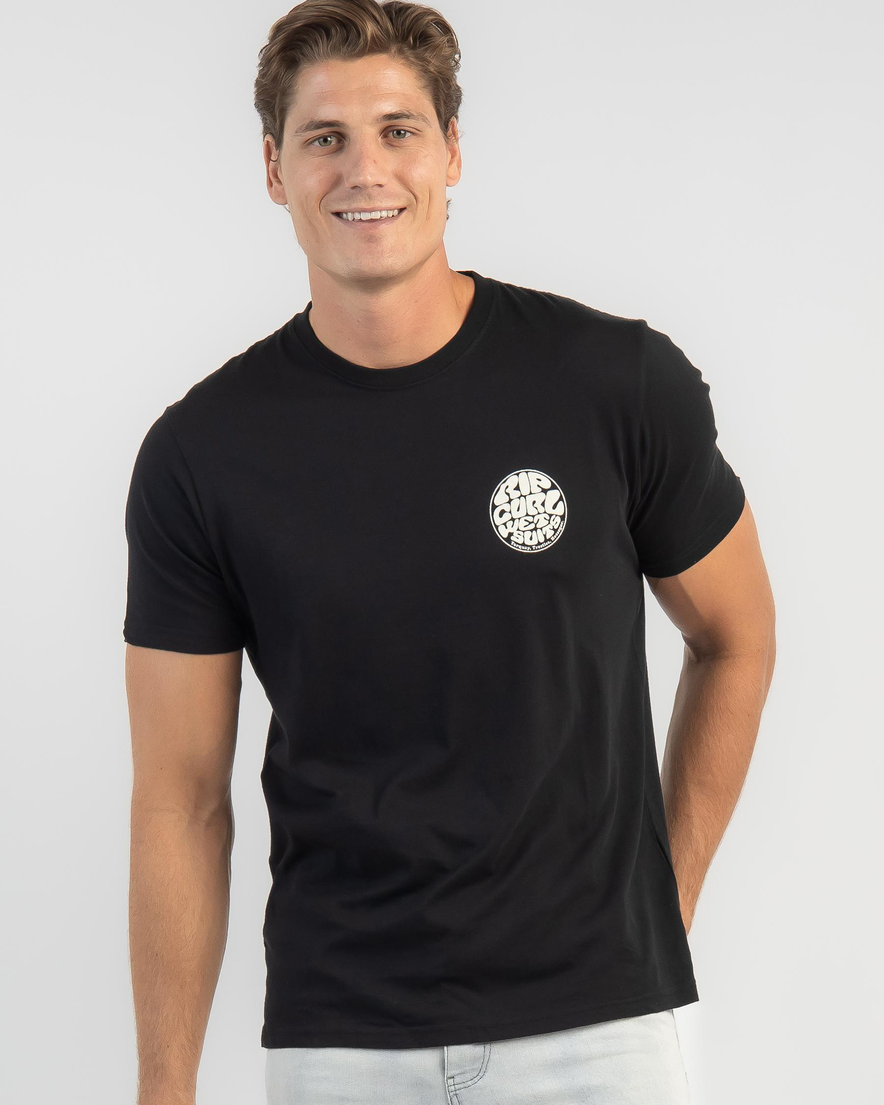 The Rip Curl Wetsuit Icon T-Shirt in black offers a sleek and versatile look for any occasion. Stylish and comfortable.