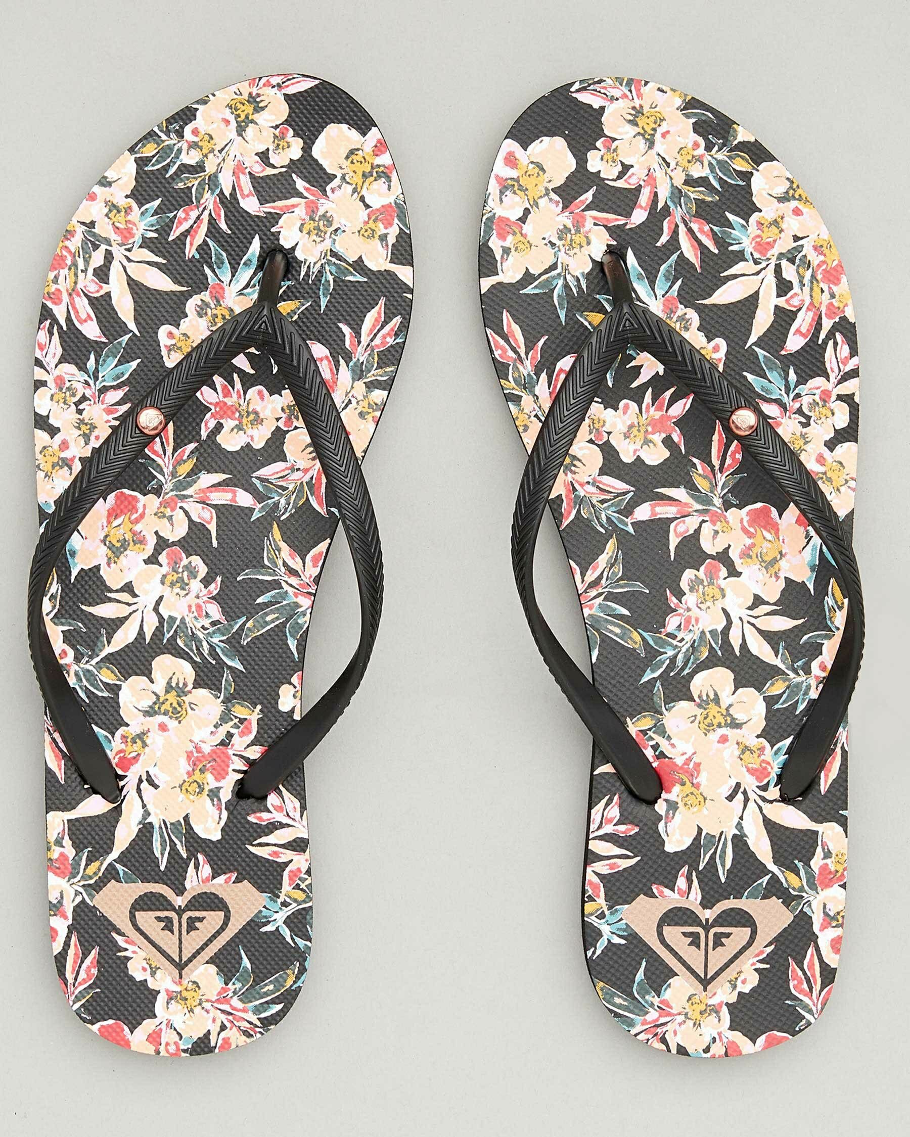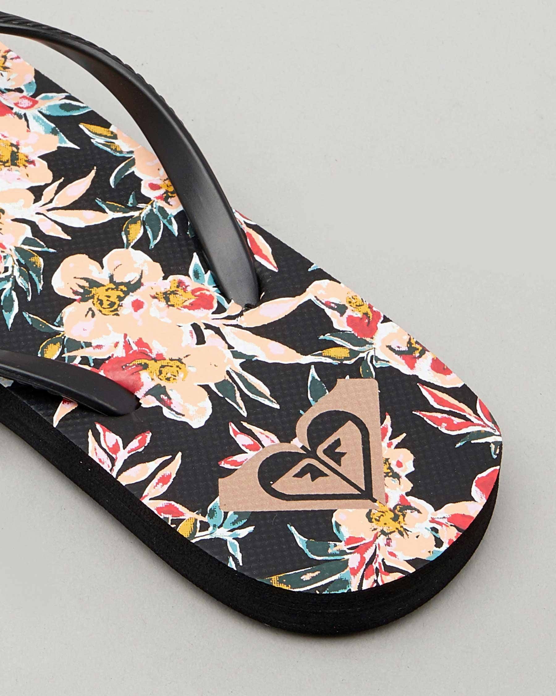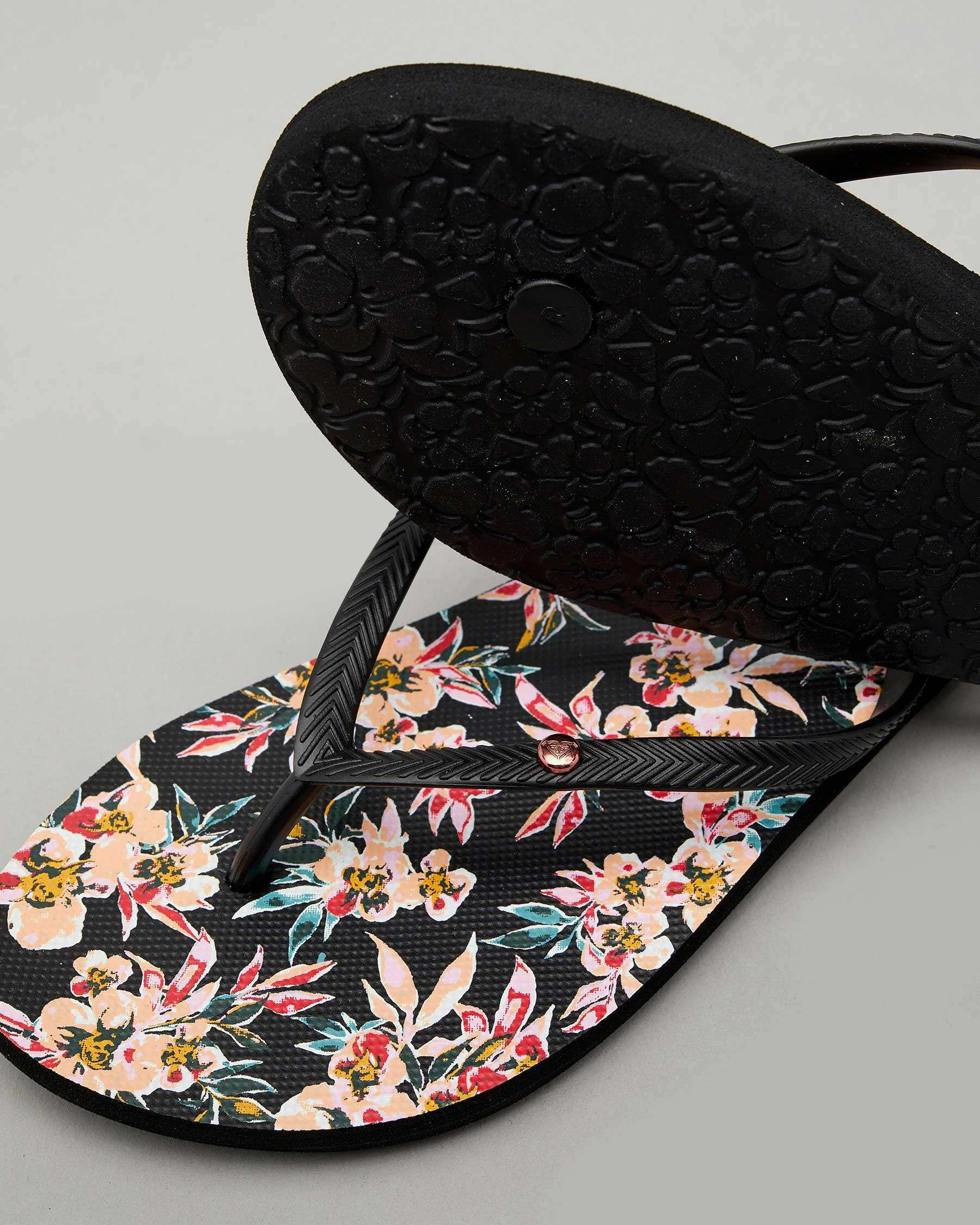 Slim straps, Textured footbed, Metal logo, Printed footbed
