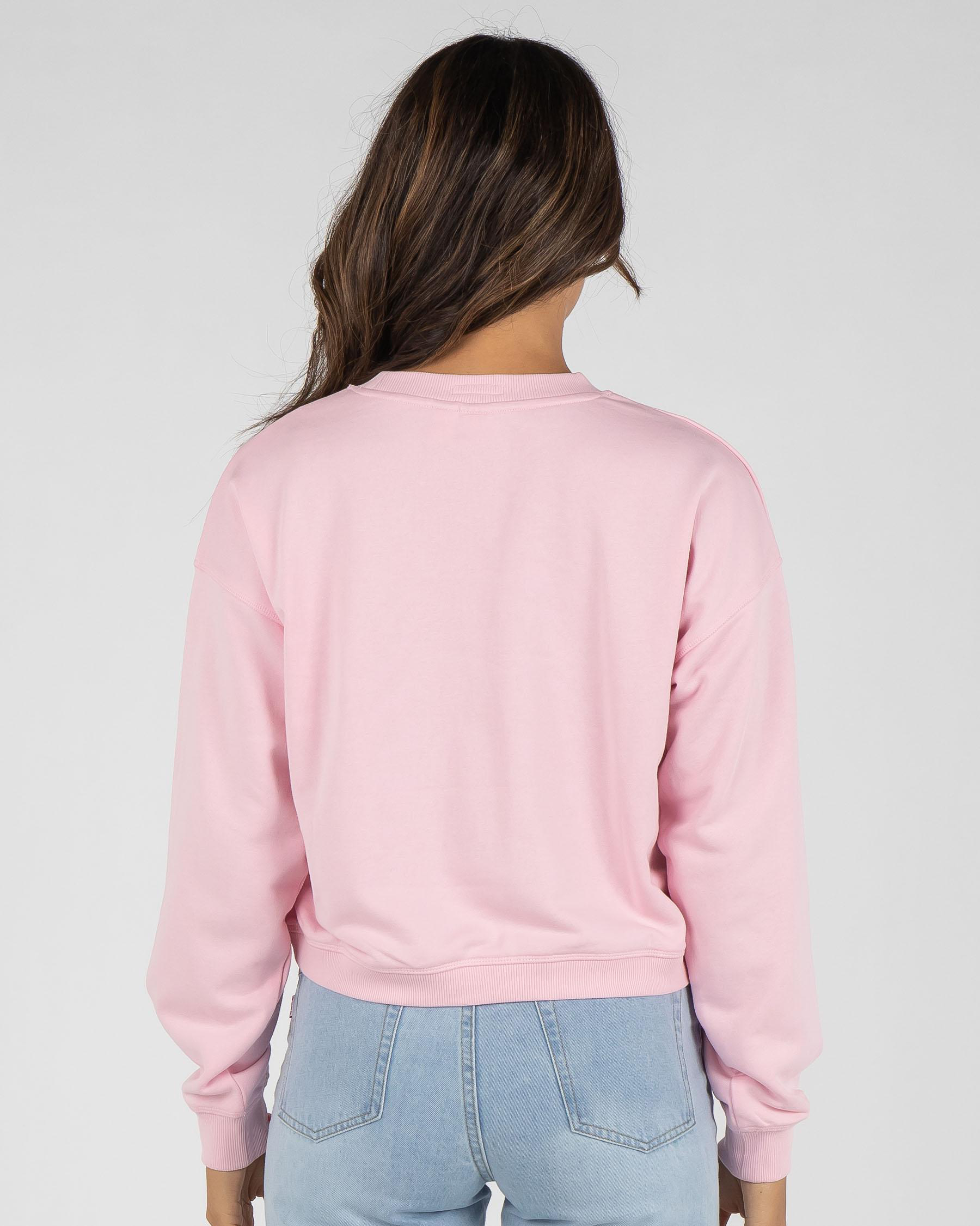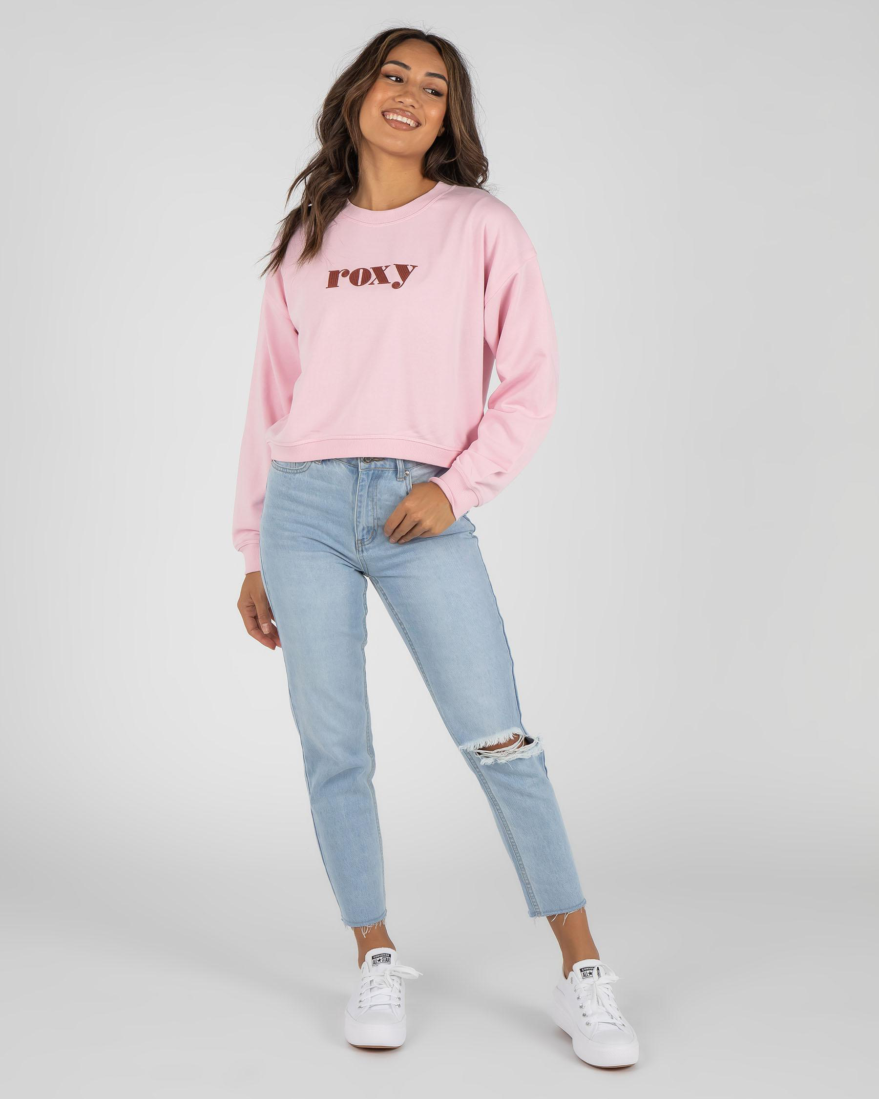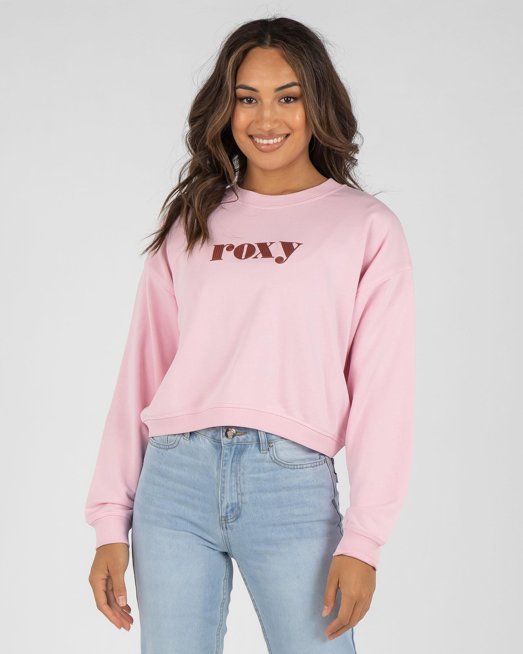 The Roxy Break Away Crewneck Sweatshirt in Pink Mist offers a cozy and stylish addition to your wardrobe. Perfect for cool weather days.