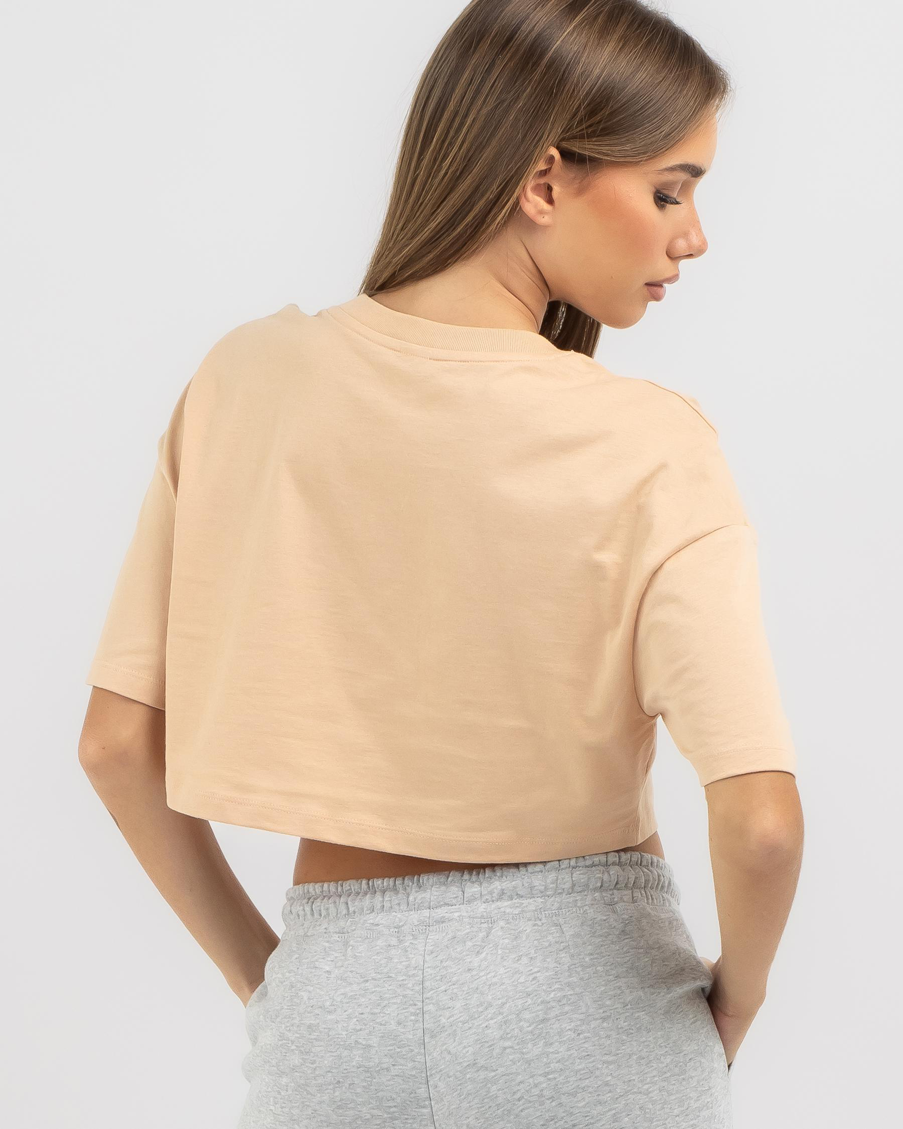 The Roxy Energy Boxy Crop T-Shirt in Toasted Almond is a chic addition to your wardrobe, with a stylish and versatile neutral color.