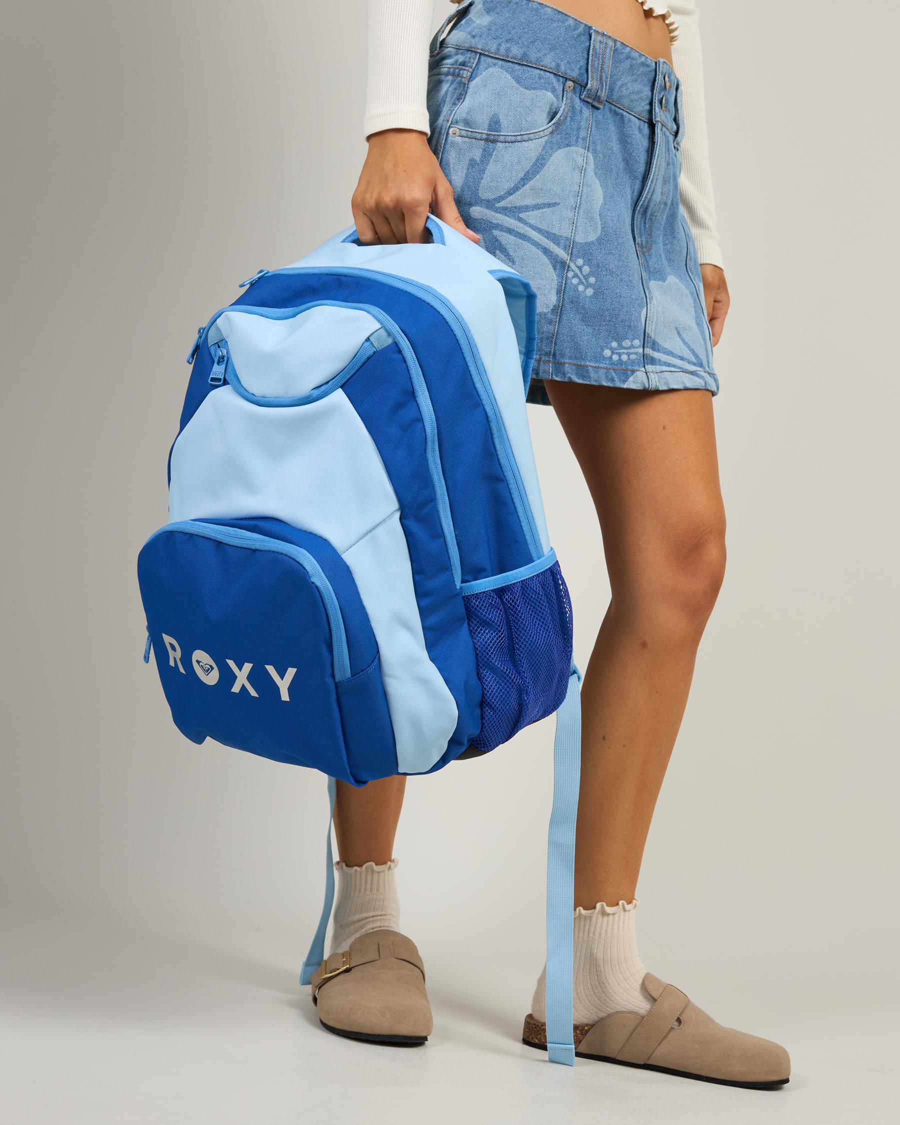 Handle, Adjustable straps, Media compartment, External zipped pocket, Fits A4 sized folders and books, Large main compartment, Waterbottle pouch