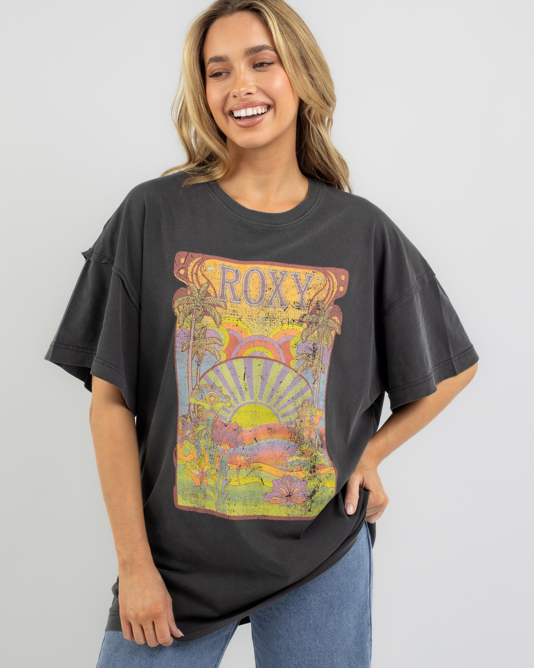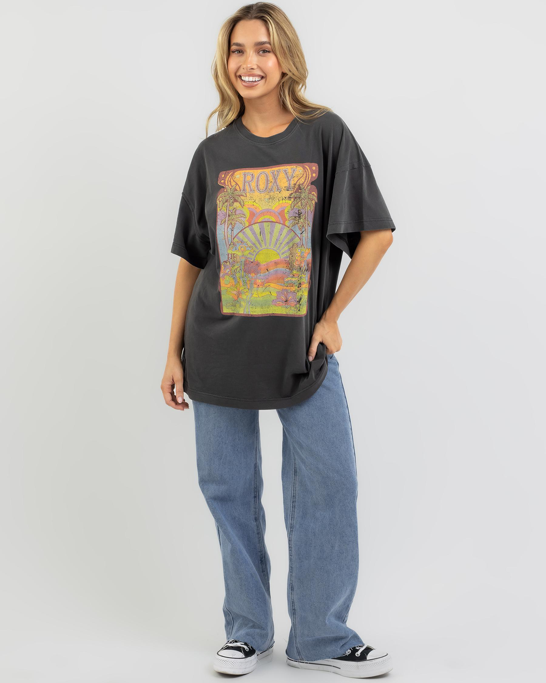 The Roxy Sweeter Sun T-Shirt in Anthracite is a sleek and stylish addition to your wardrobe. Ideal for everyday wear with a touch of edge.