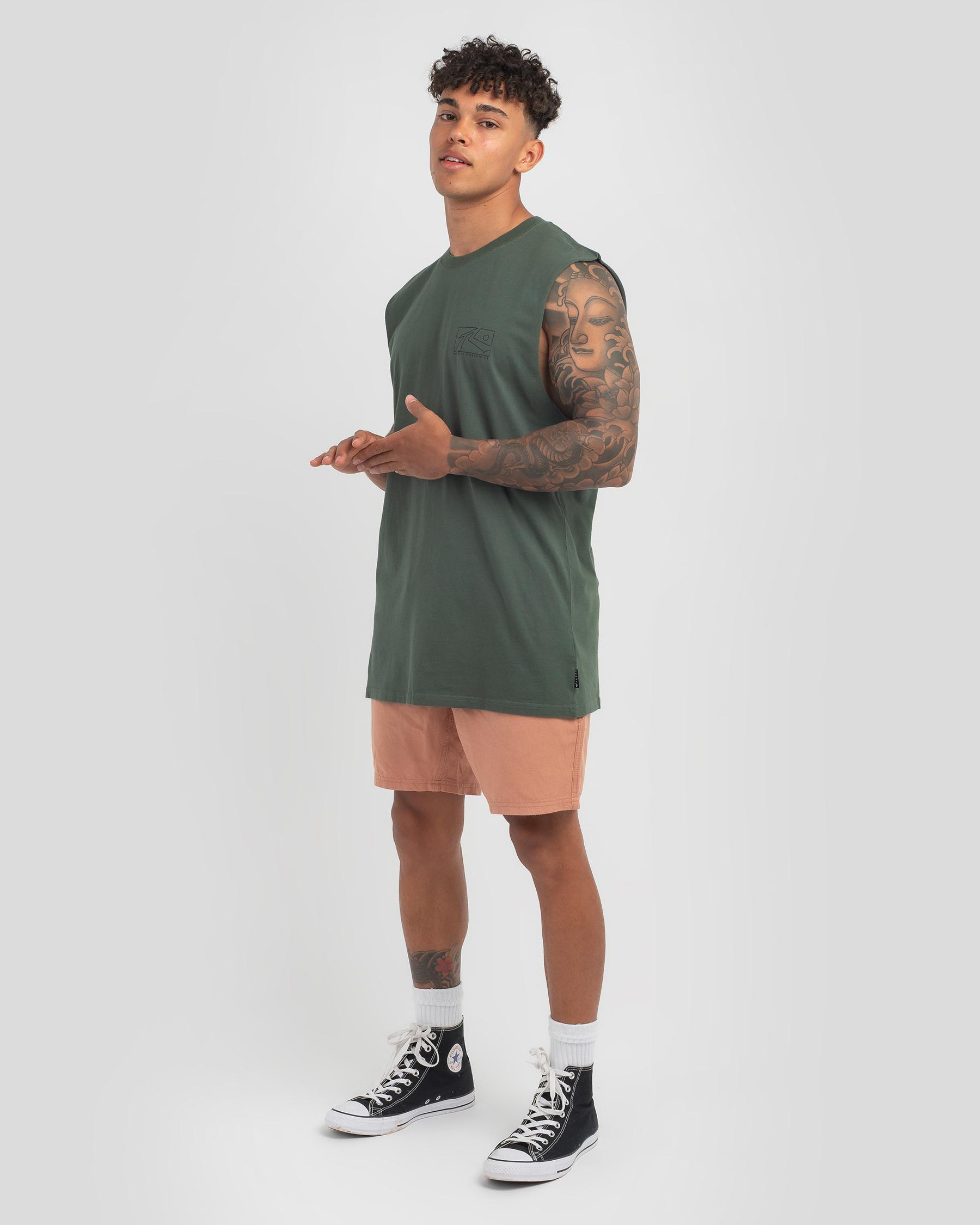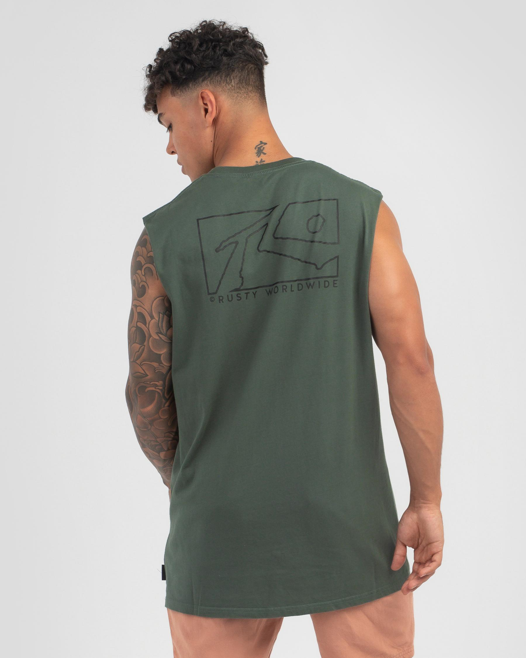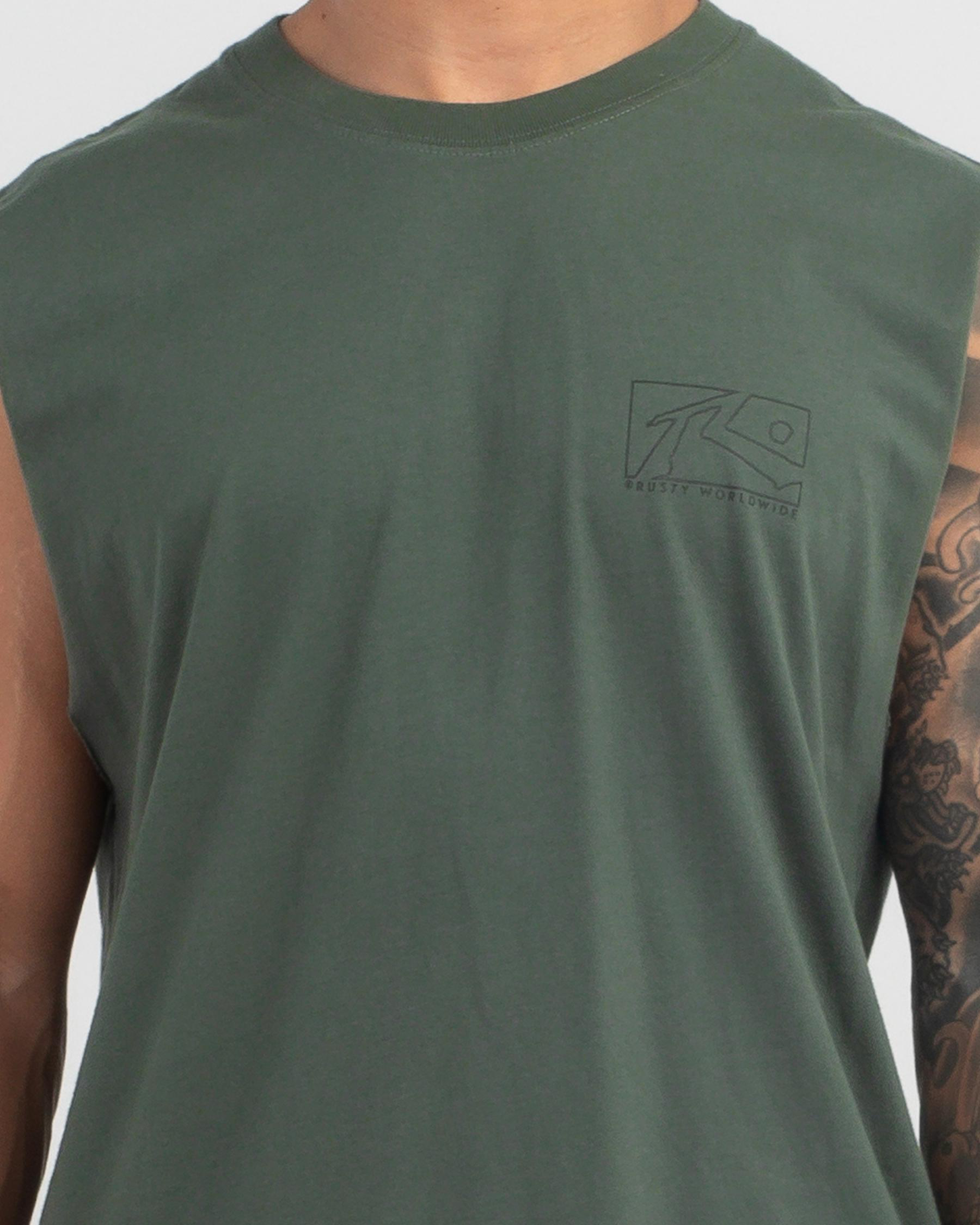 The Rusty Boxed Out Muscle Tank in Shadow Army offers a sleek, edgy look with its singular army green hue.