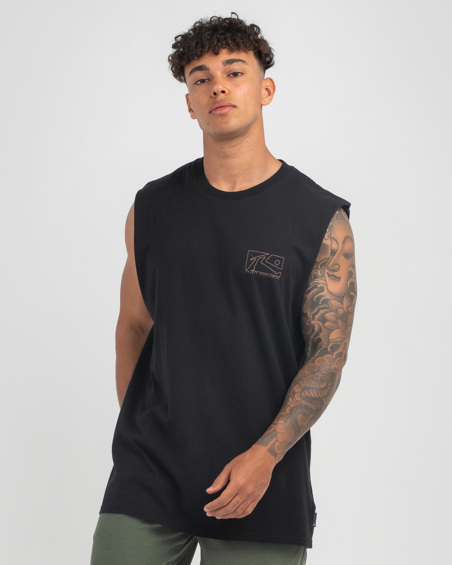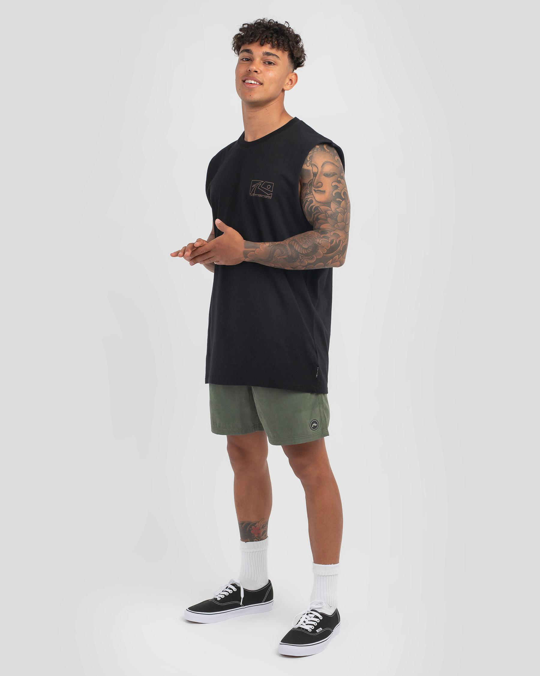 The Rusty Boxed Out Muscle Tank in Shadow Army offers a sleek, edgy look with its singular army green hue.