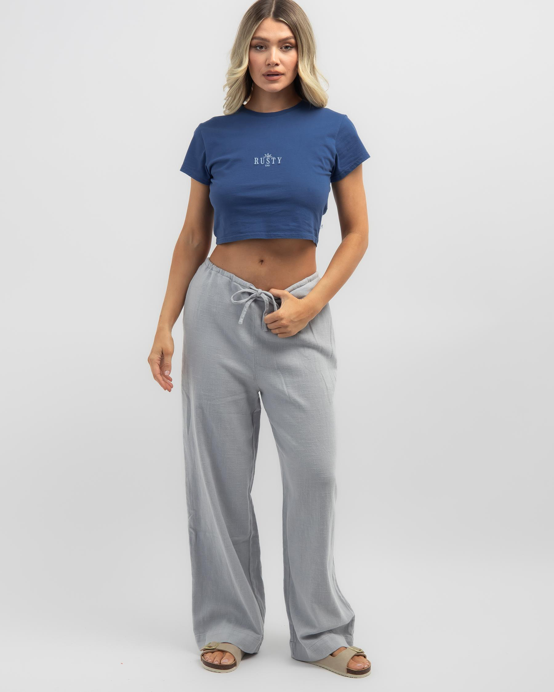 Shop Rusty Carolina Pants in Glacial Blue for a stylish and versatile addition to your wardrobe. Elevate your look with this cool, blue hue.