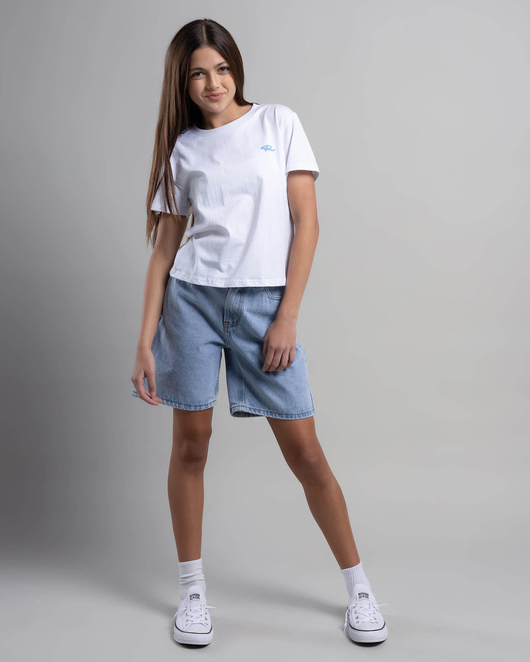 The Rusty Girls' Wildflower T-Shirt in White features a whimsical wildflower design, adding a touch of charm to any outfit.