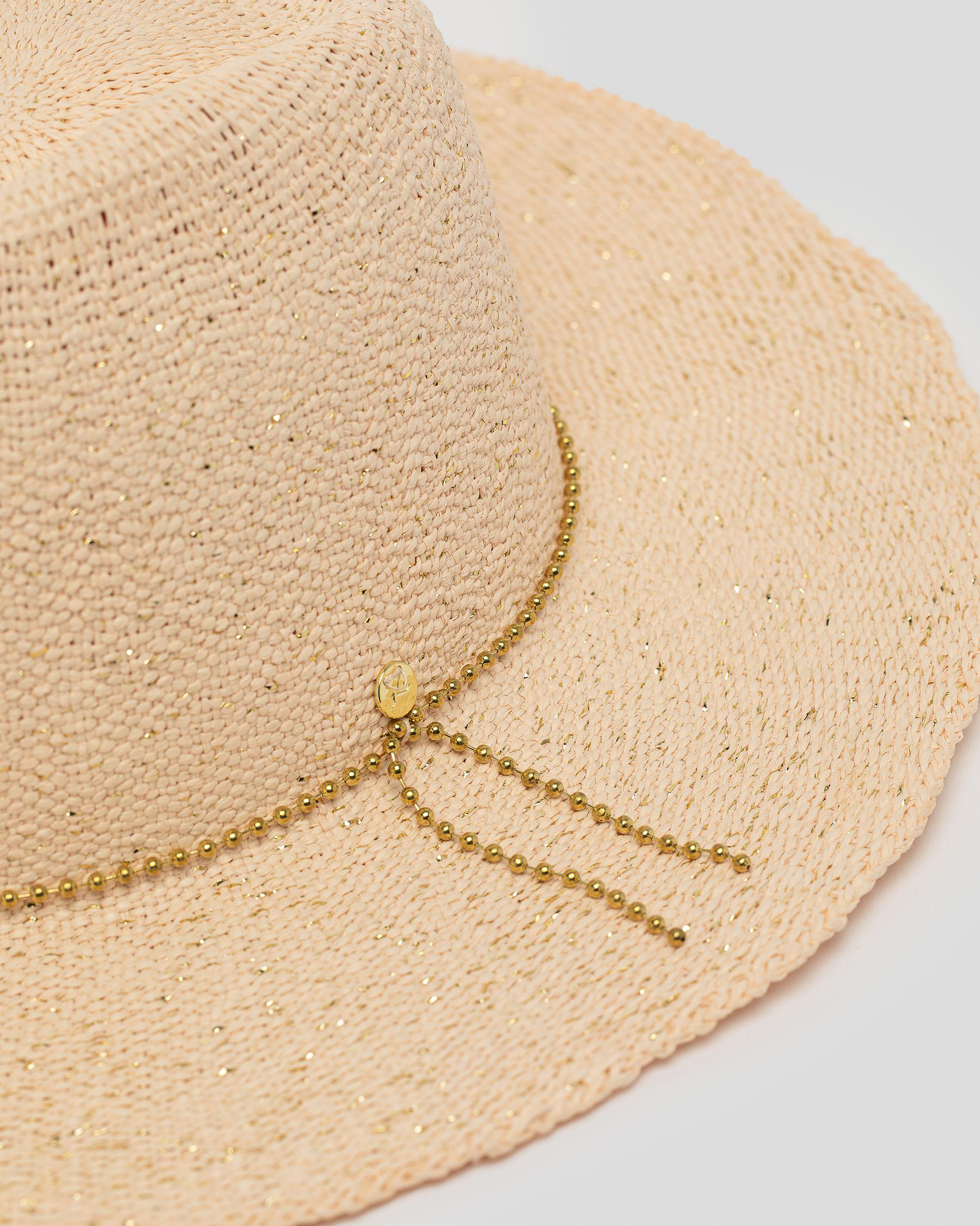 Thin chain crown band and metal trims.