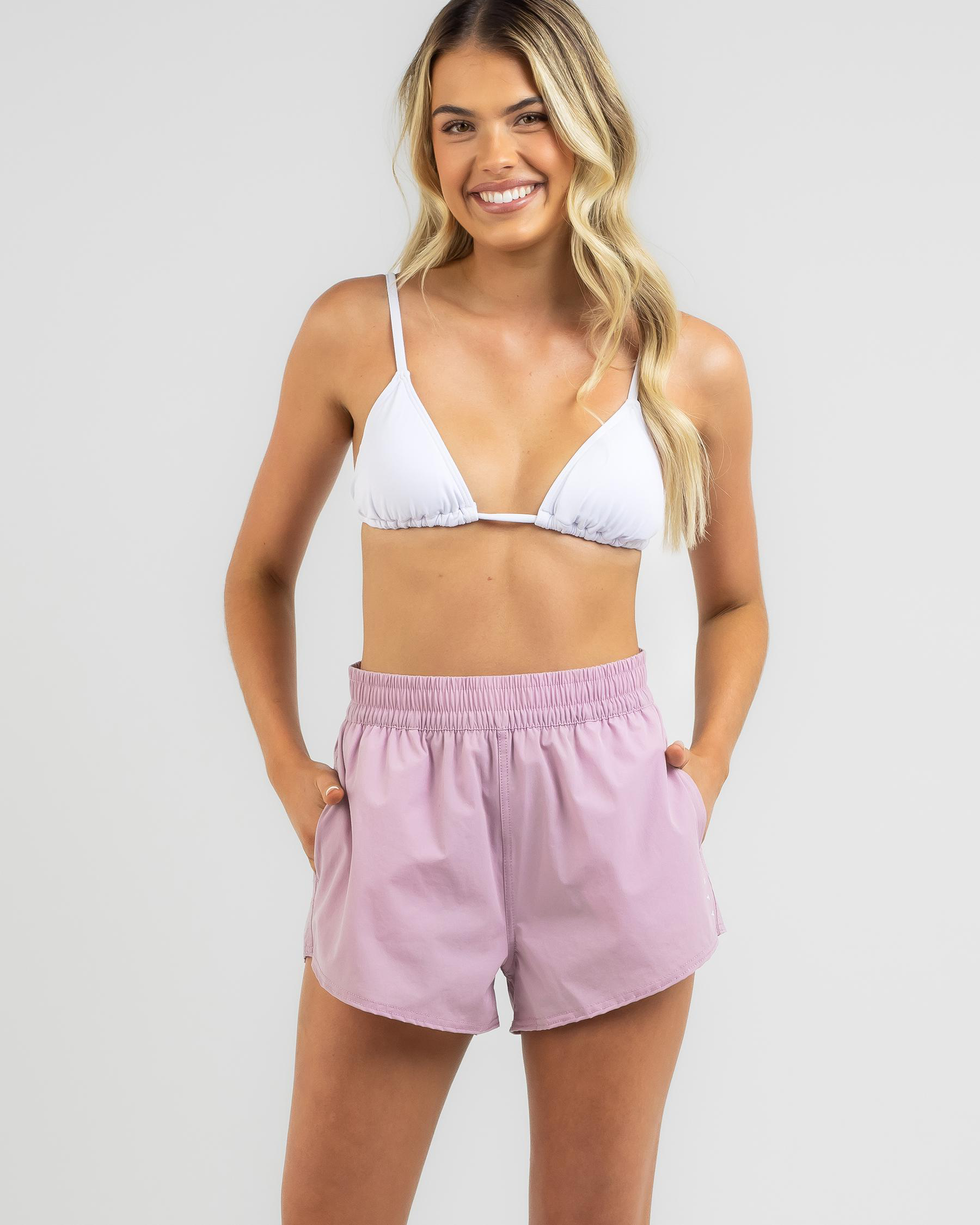 The Rusty Meelup Board Shorts in a lovely Fondant Pink hue are a must-have for beach-goers looking to make a stylish statement.