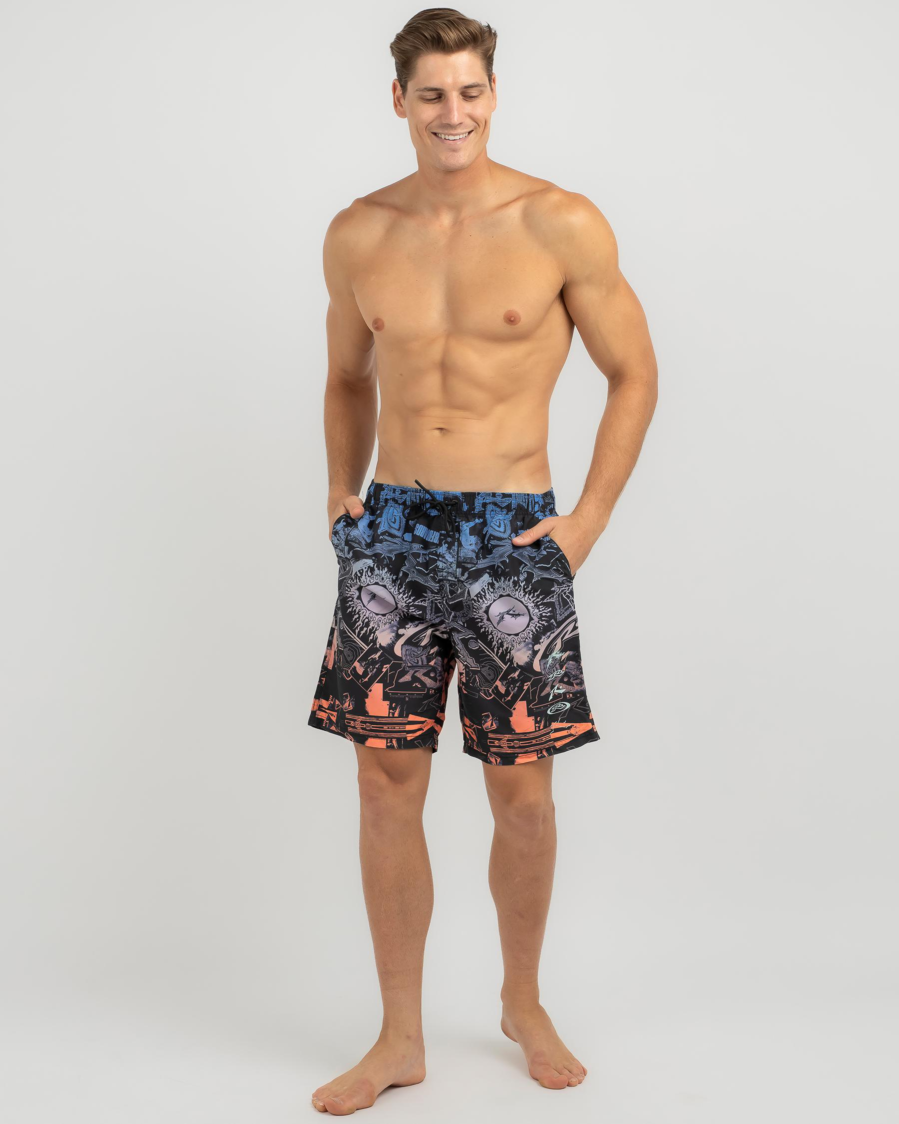 Shop the Rusty Paste Up Elastic Board Shorts in sleek black. Perfect for beach days or casual outings, these shorts offer comfort and style in one.
