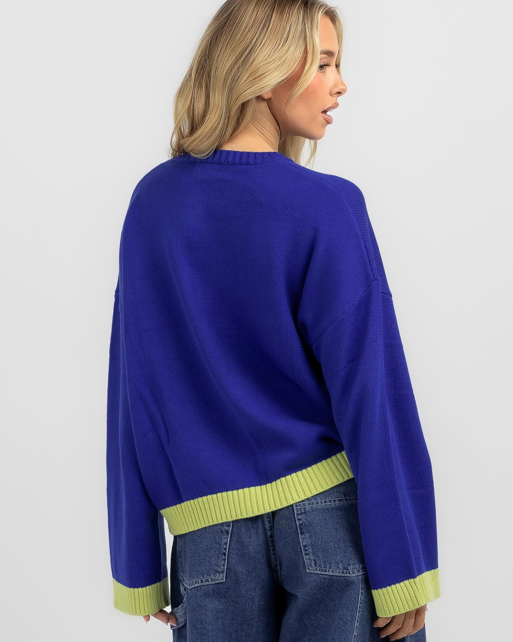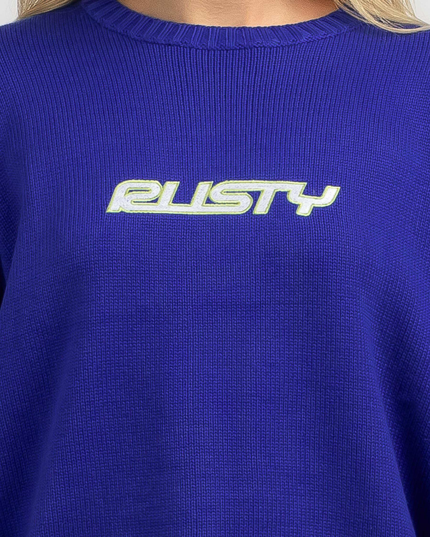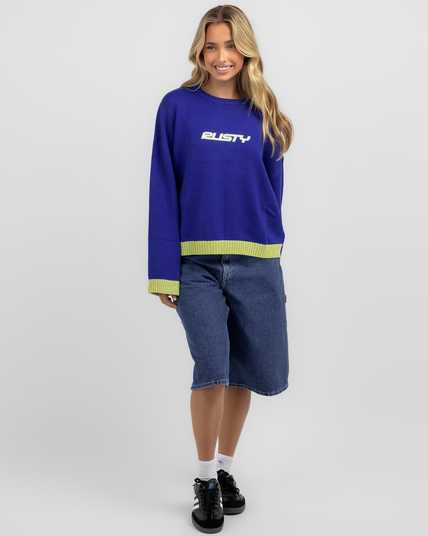 Stay cozy in the Rusty Rider Relaxed Knit Jumper in Blue Sapphire. The perfect pop of color for your winter wardrobe.