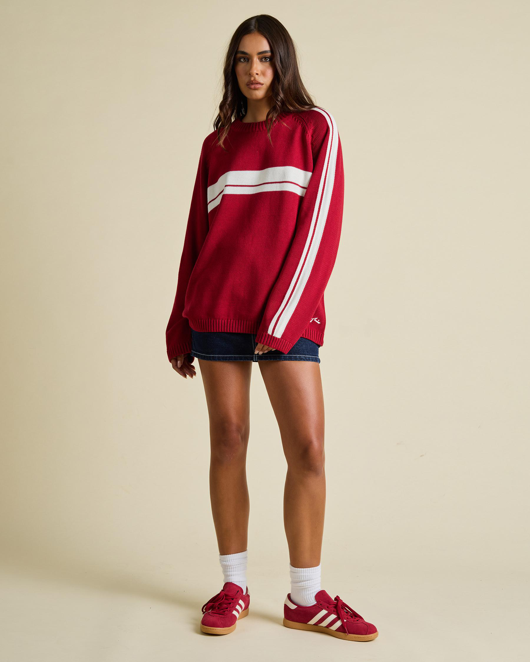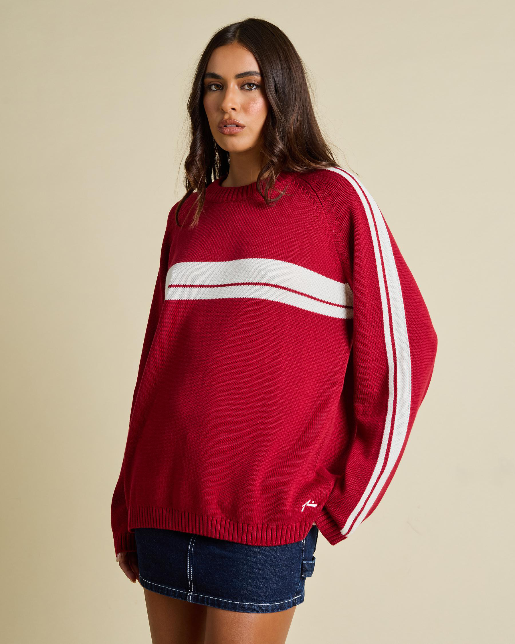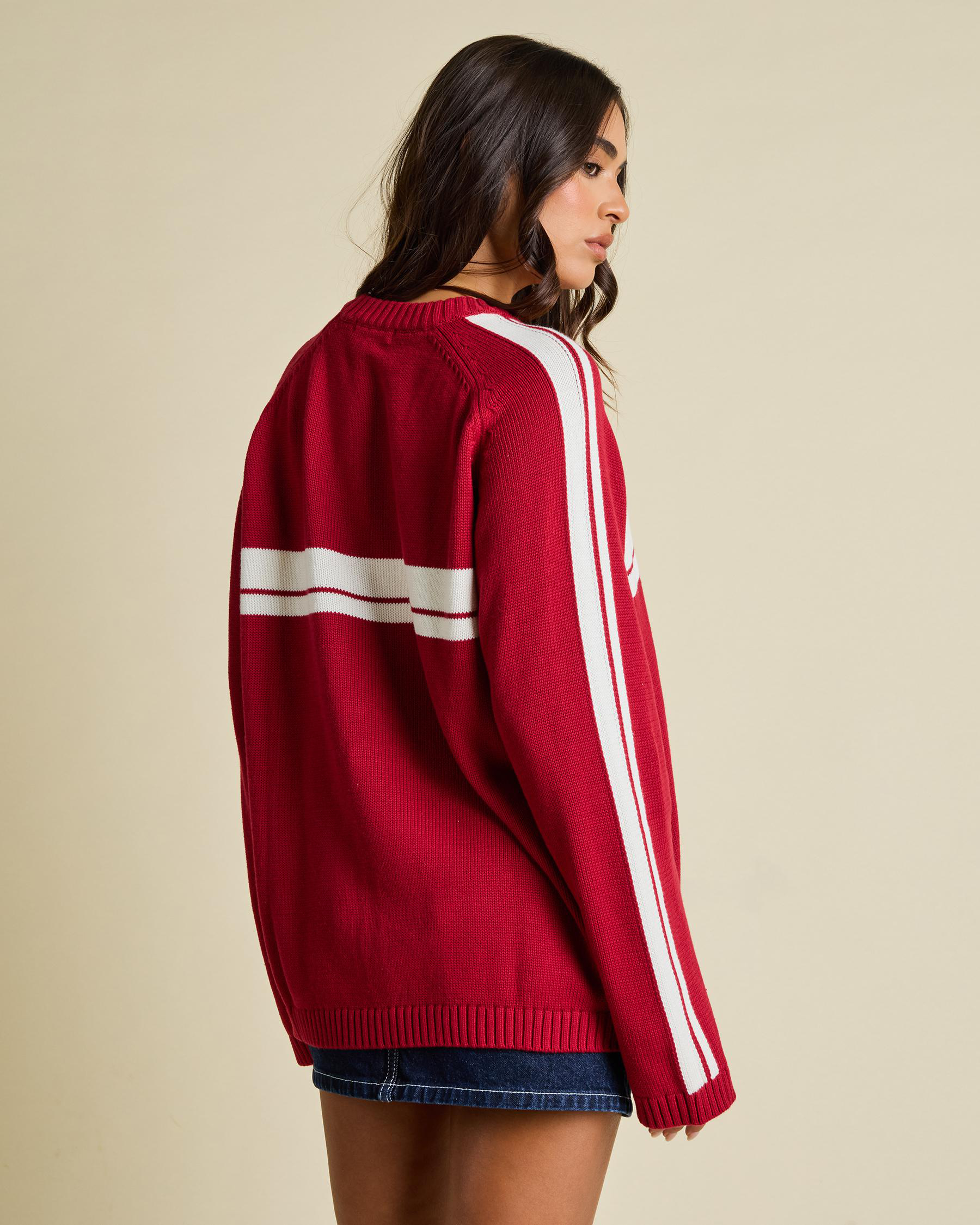 White Lines Crew Neck Knit Jumper