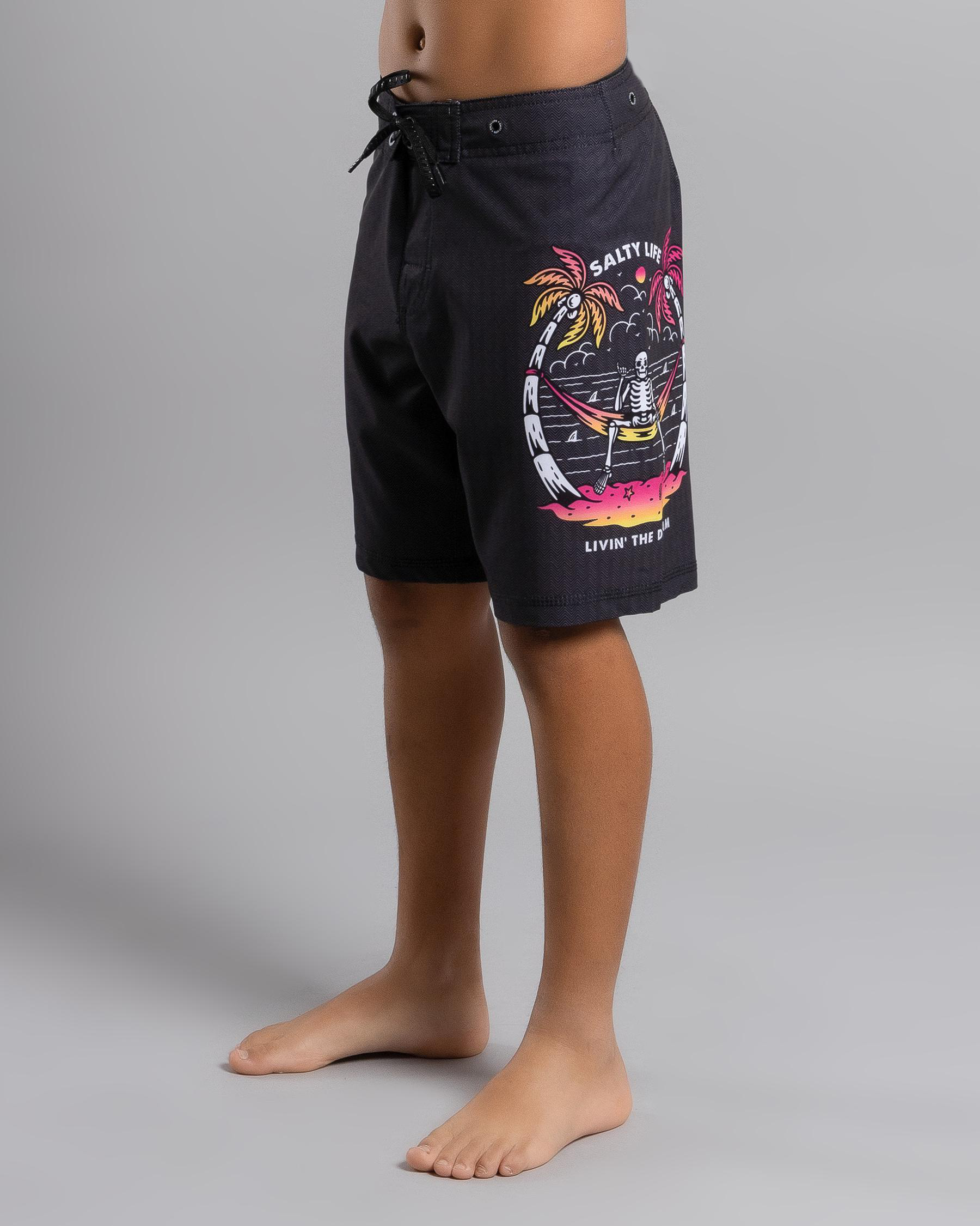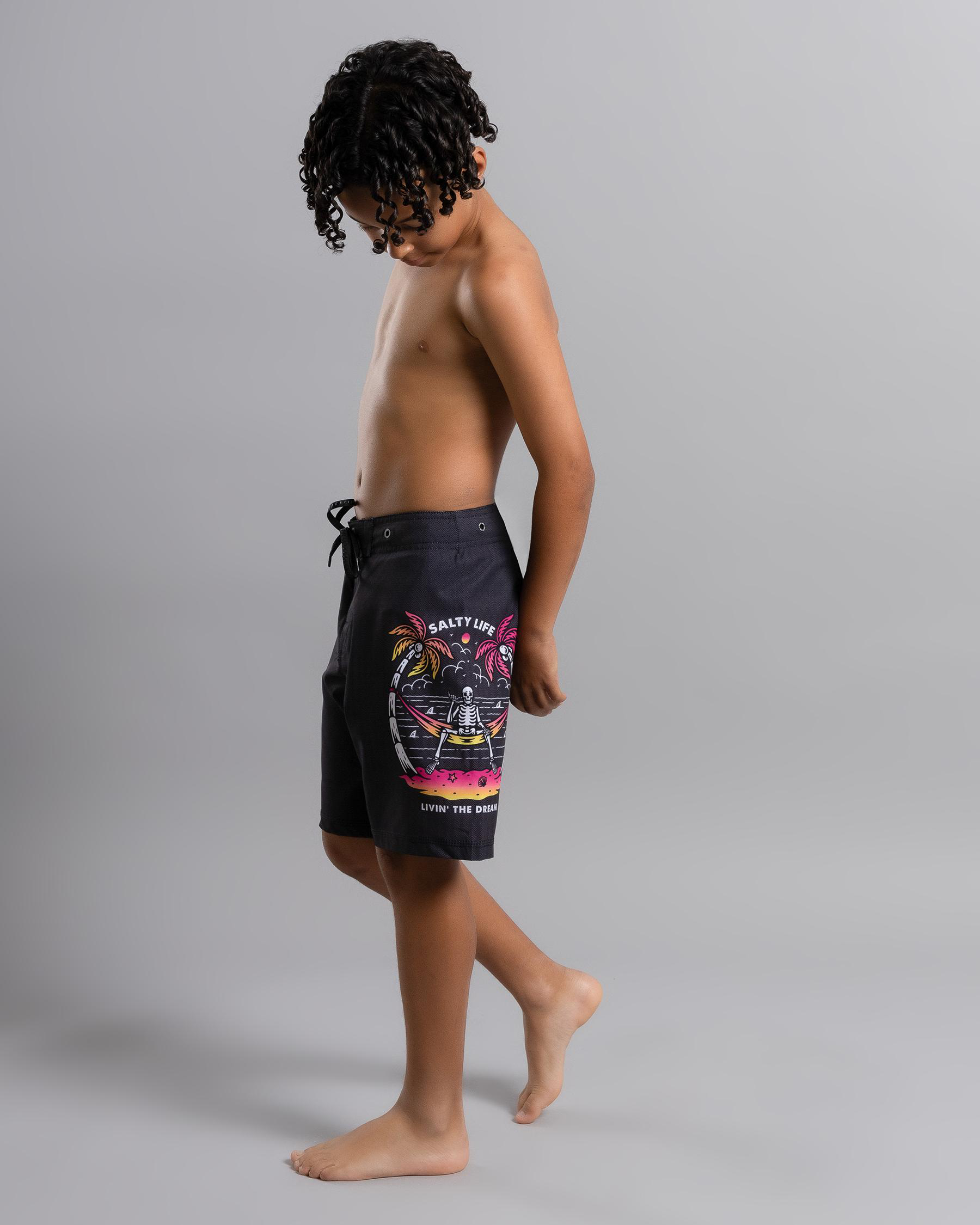 Shop the Salty Life Boys' Dream Livin' Board Shorts in sleek black. Perfect for a day at the beach or by the pool.