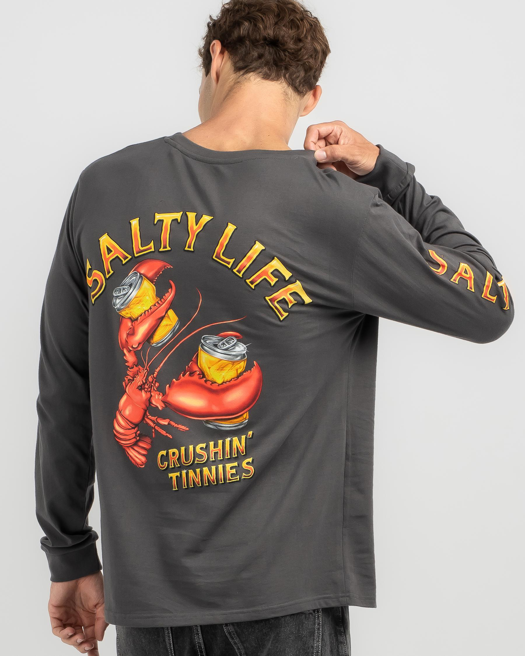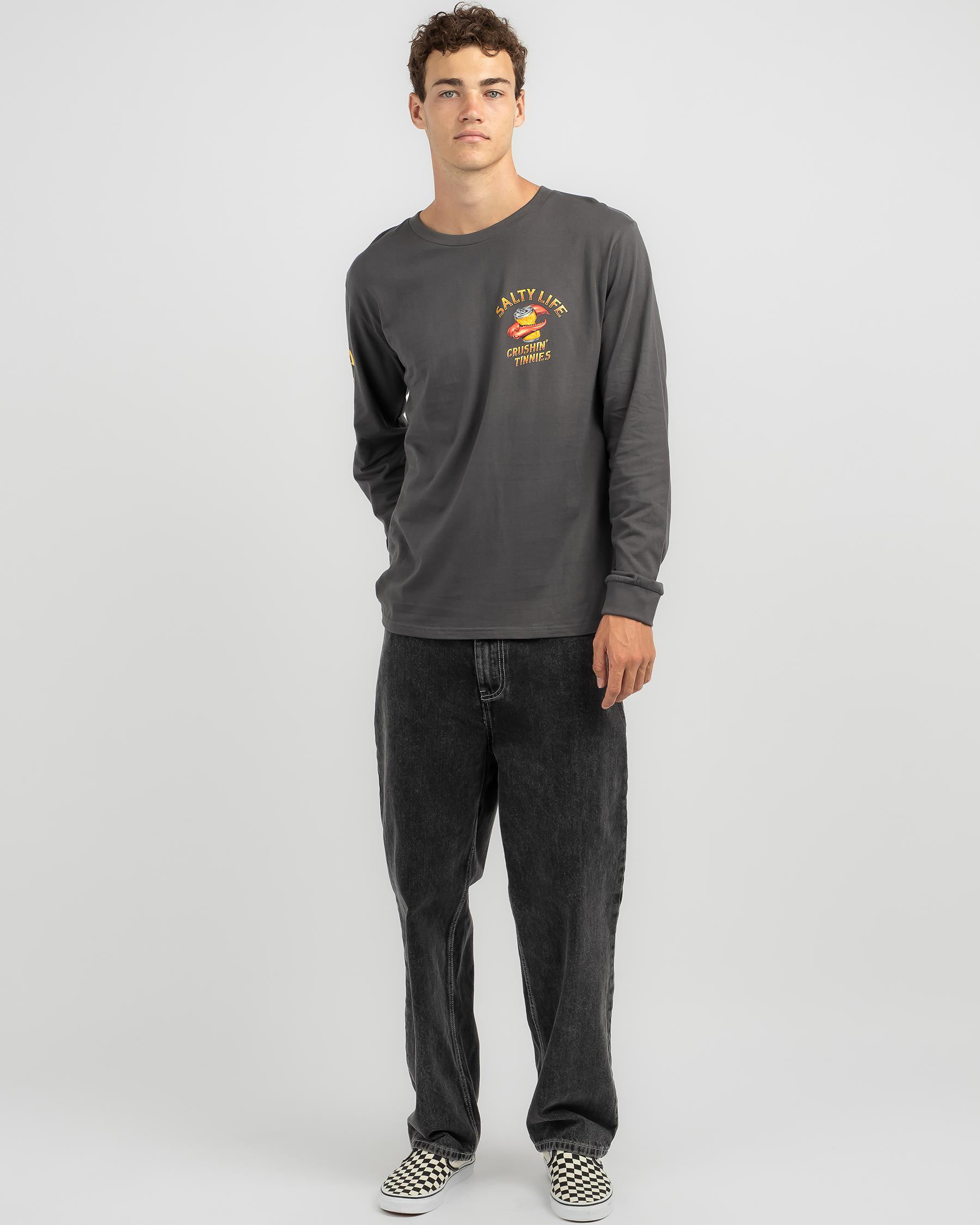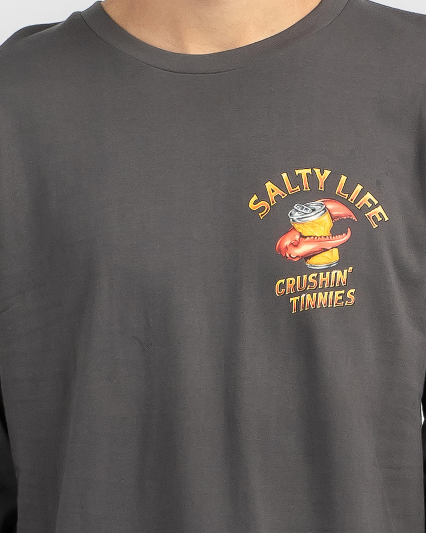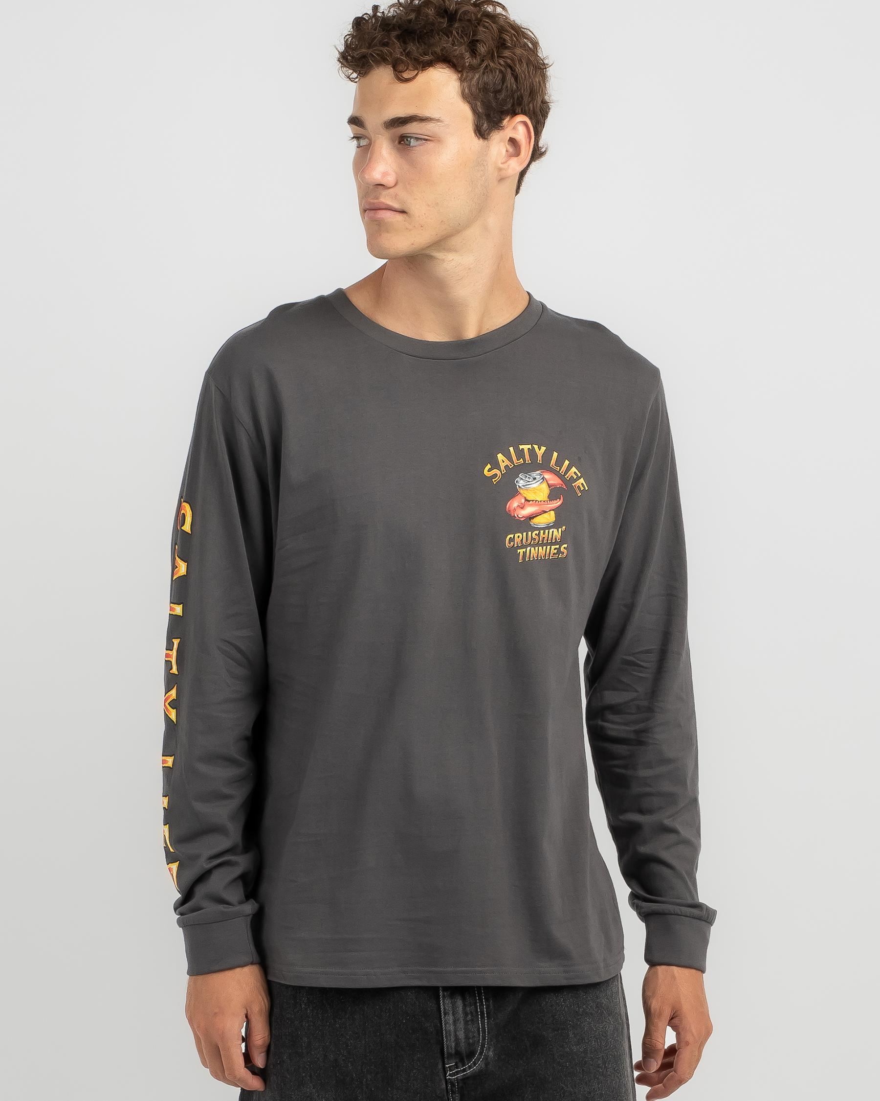 Shop the Salty Life Crushin Tinnies Long Sleeve T-Shirt in Charcoal for a laid-back look that never goes out of style.