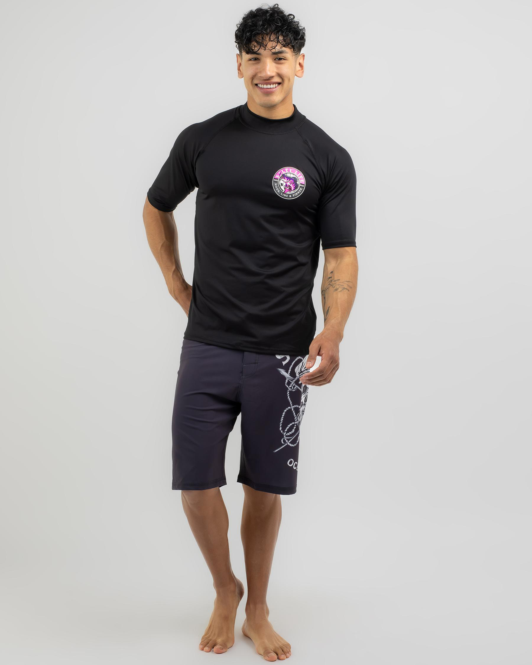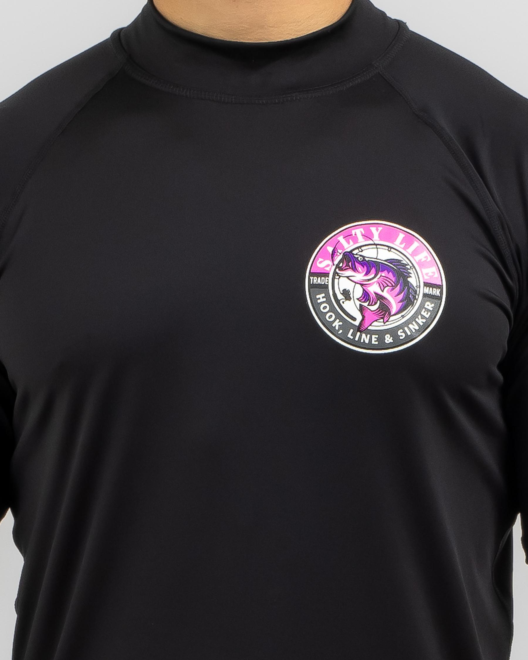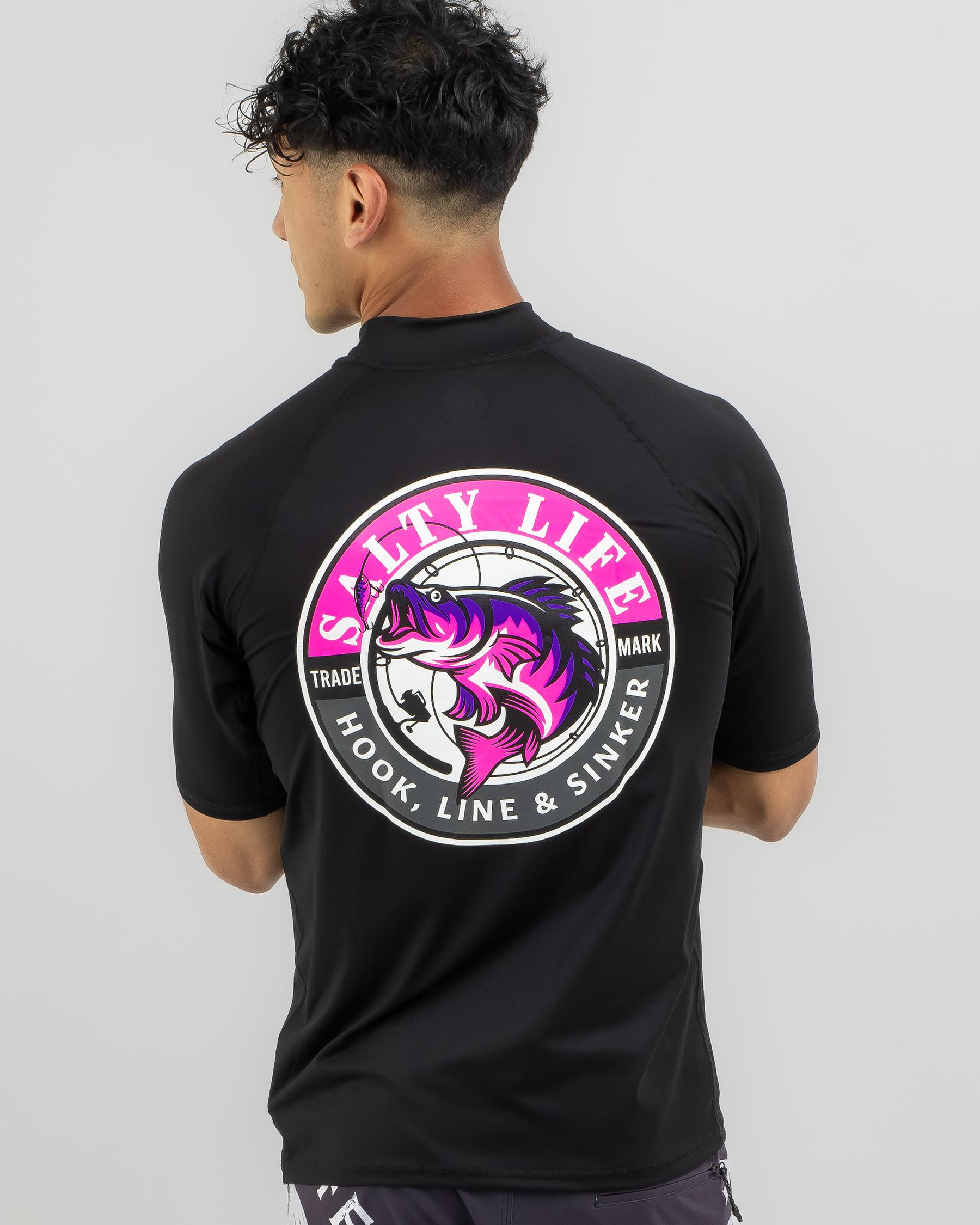 Stay stylish and protected in the Salty Life Hooked Short Sleeve Rash Vest in sleek black. Perfect for hitting the waves or lounging on the beach.