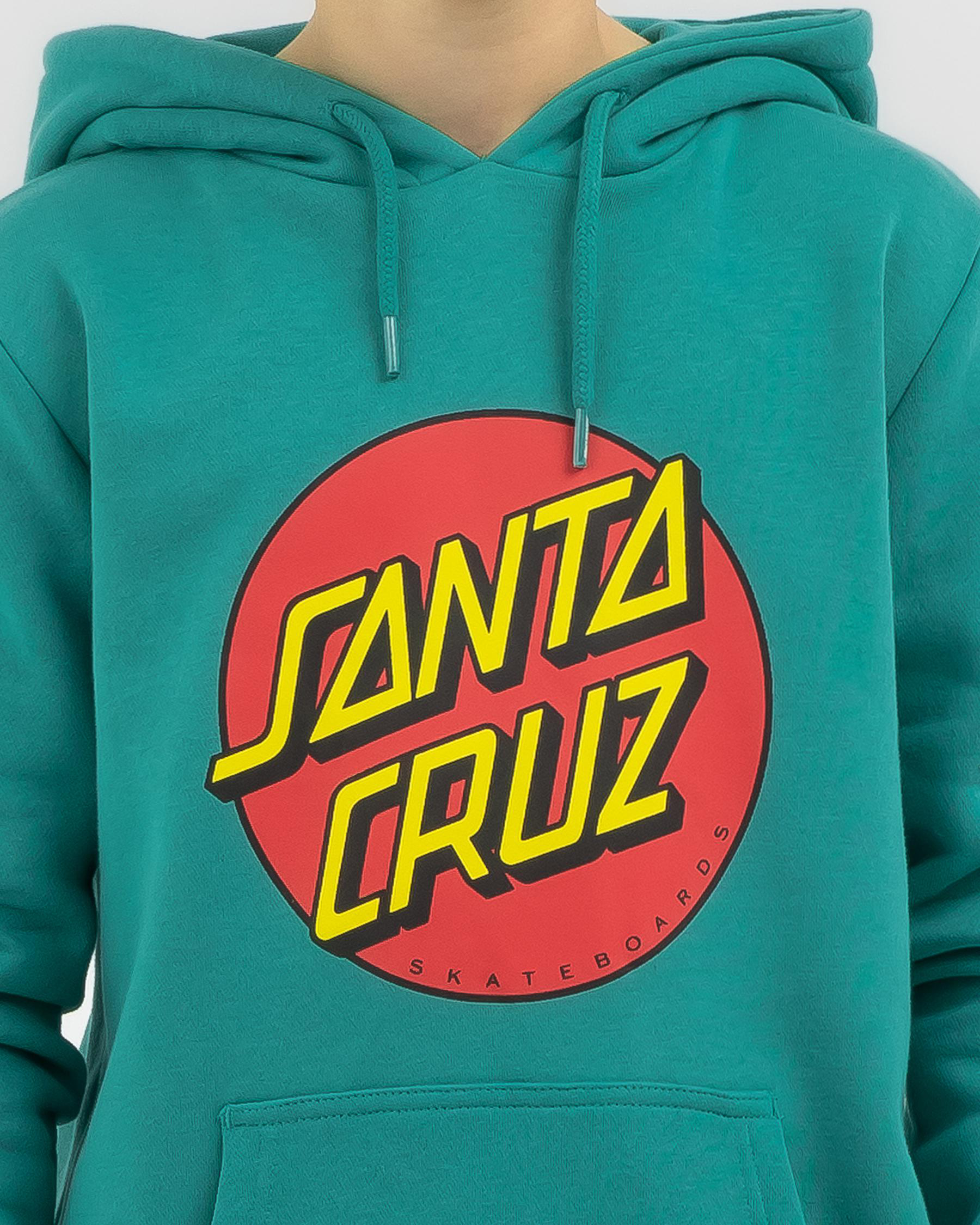 The Santa Cruz Boys' Classic Dot Front Hoodie in Teal is a stylish essential for boys, featuring a classic dot design in a bold teal color.