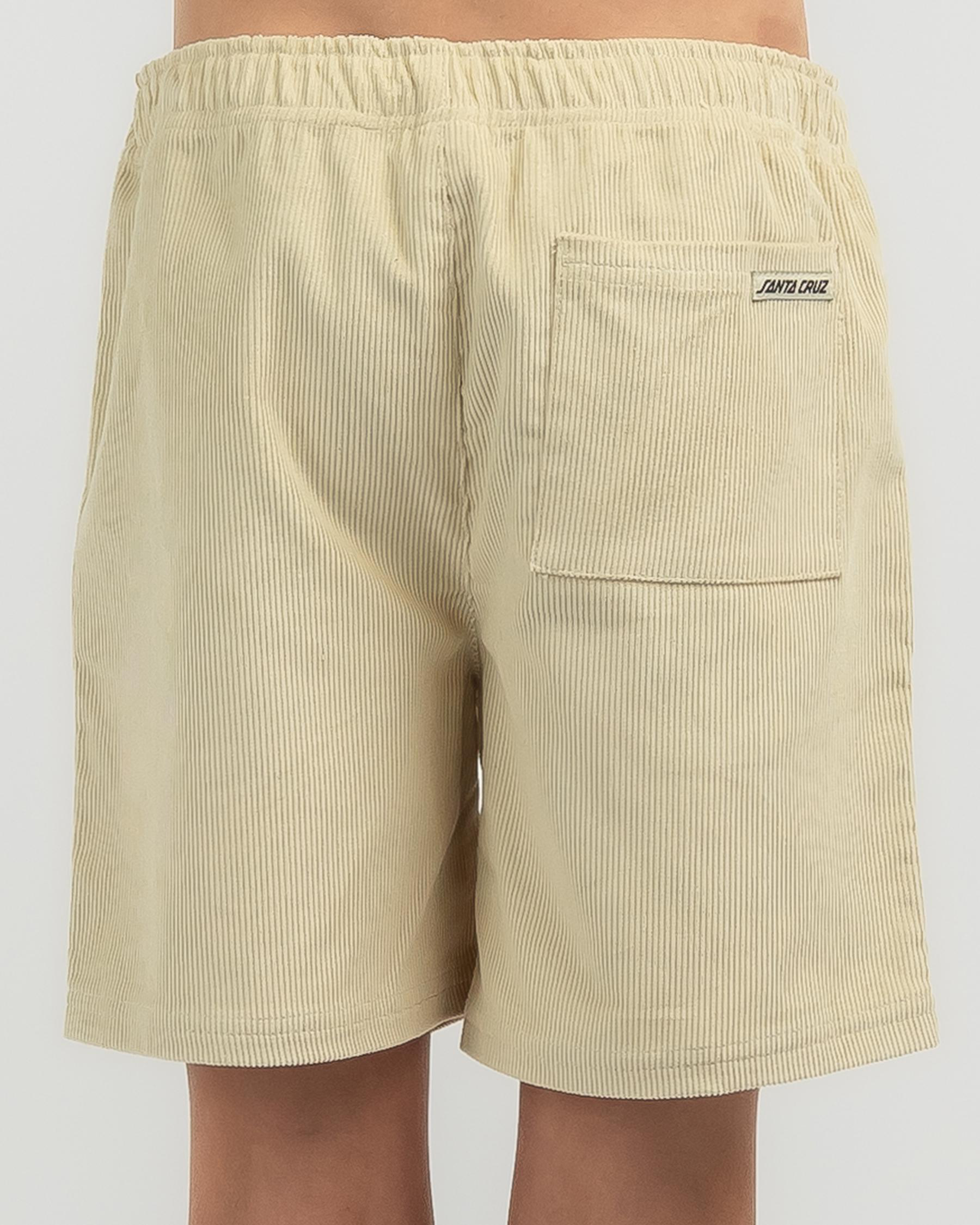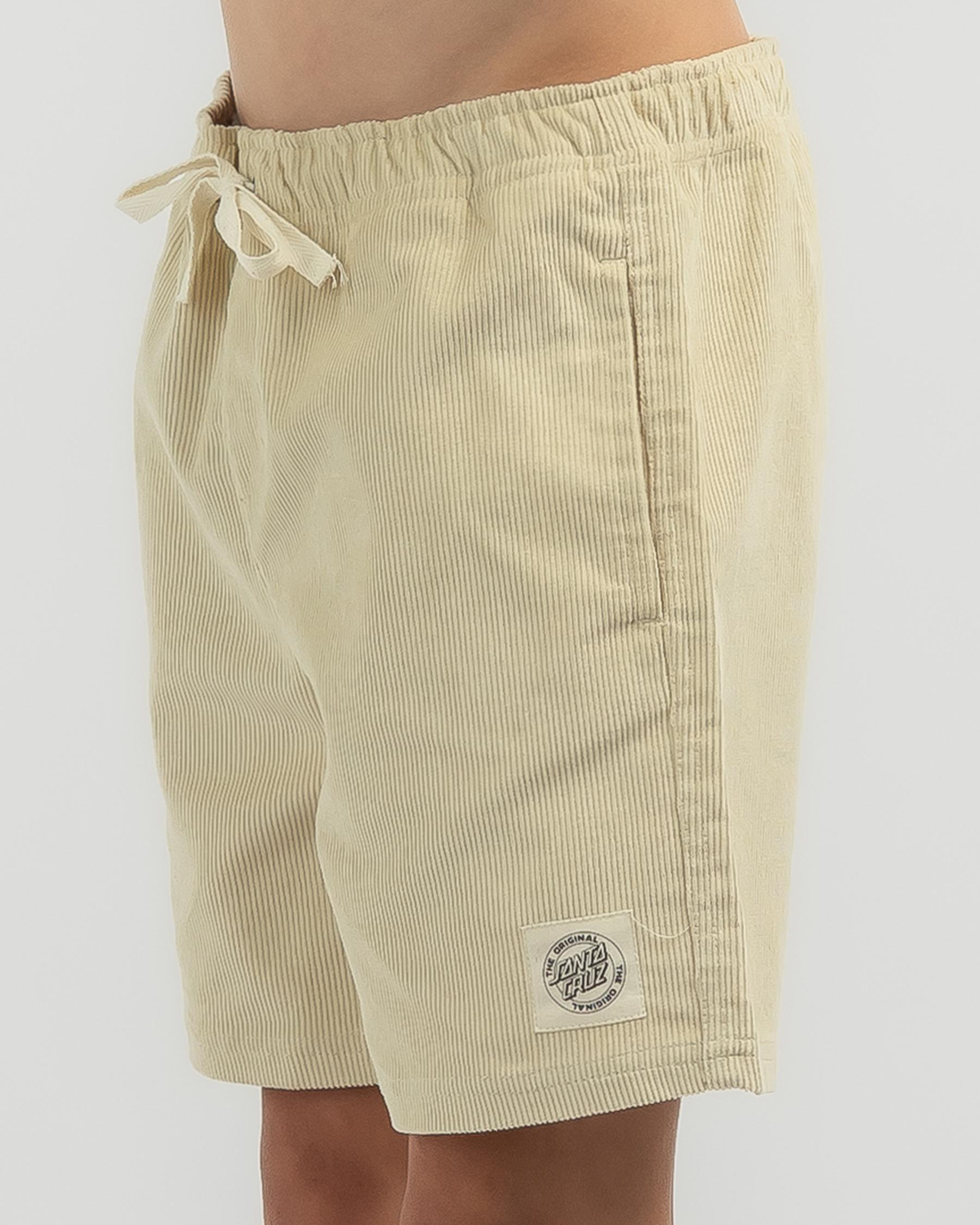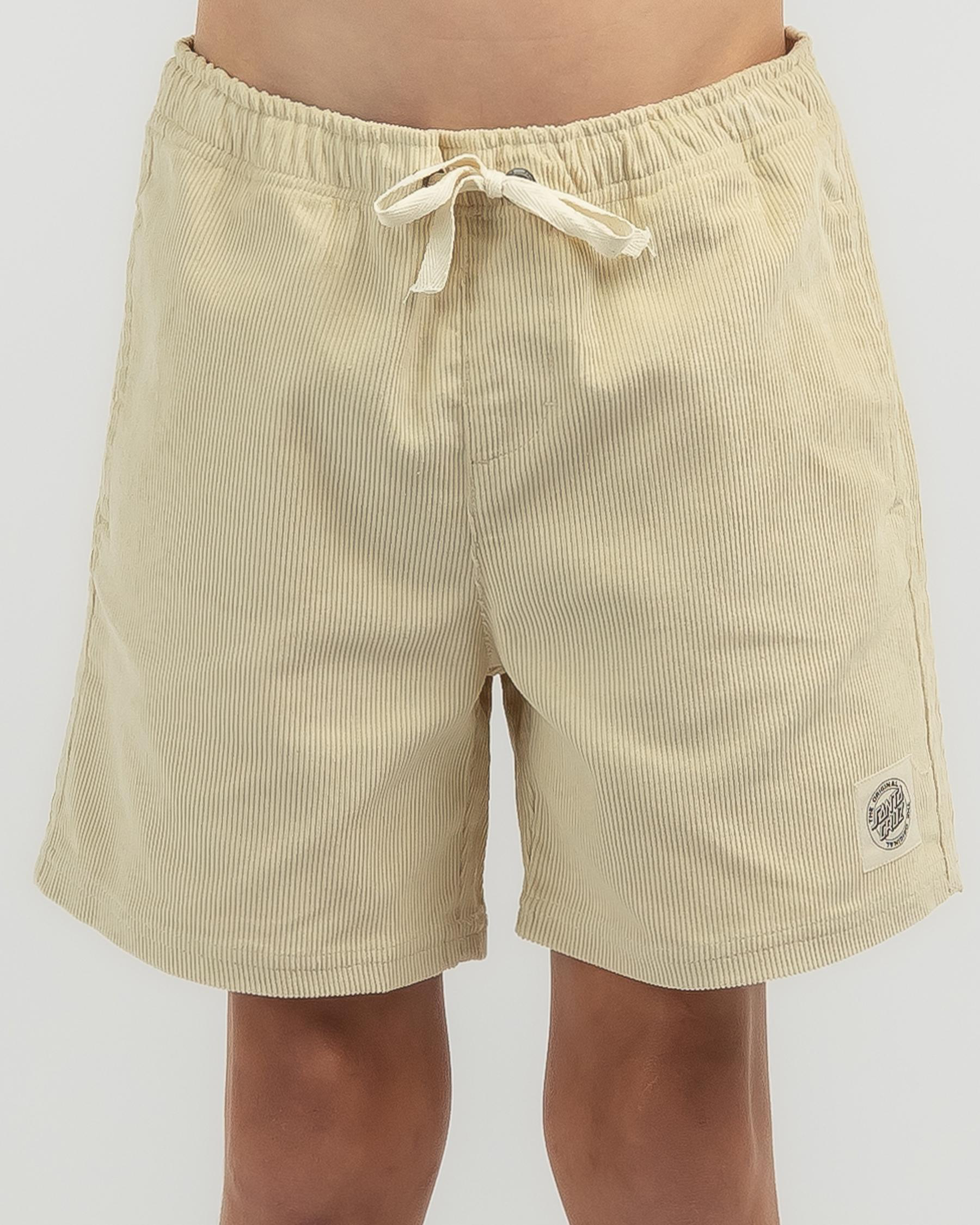 The Santa Cruz Boys' MFG Dot Curb Shorts in Natural offer a classic and versatile style that is perfect for all-day comfort and play.