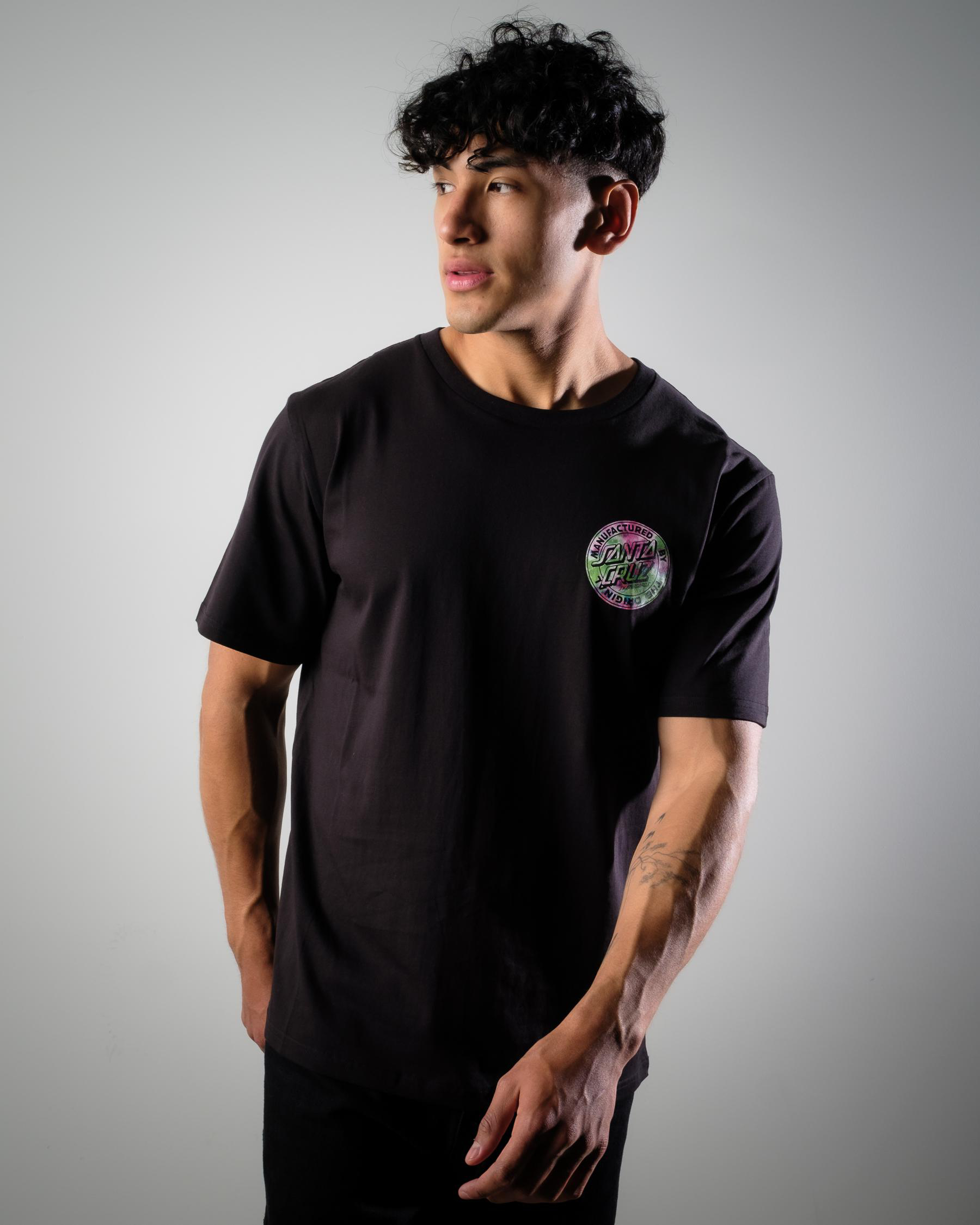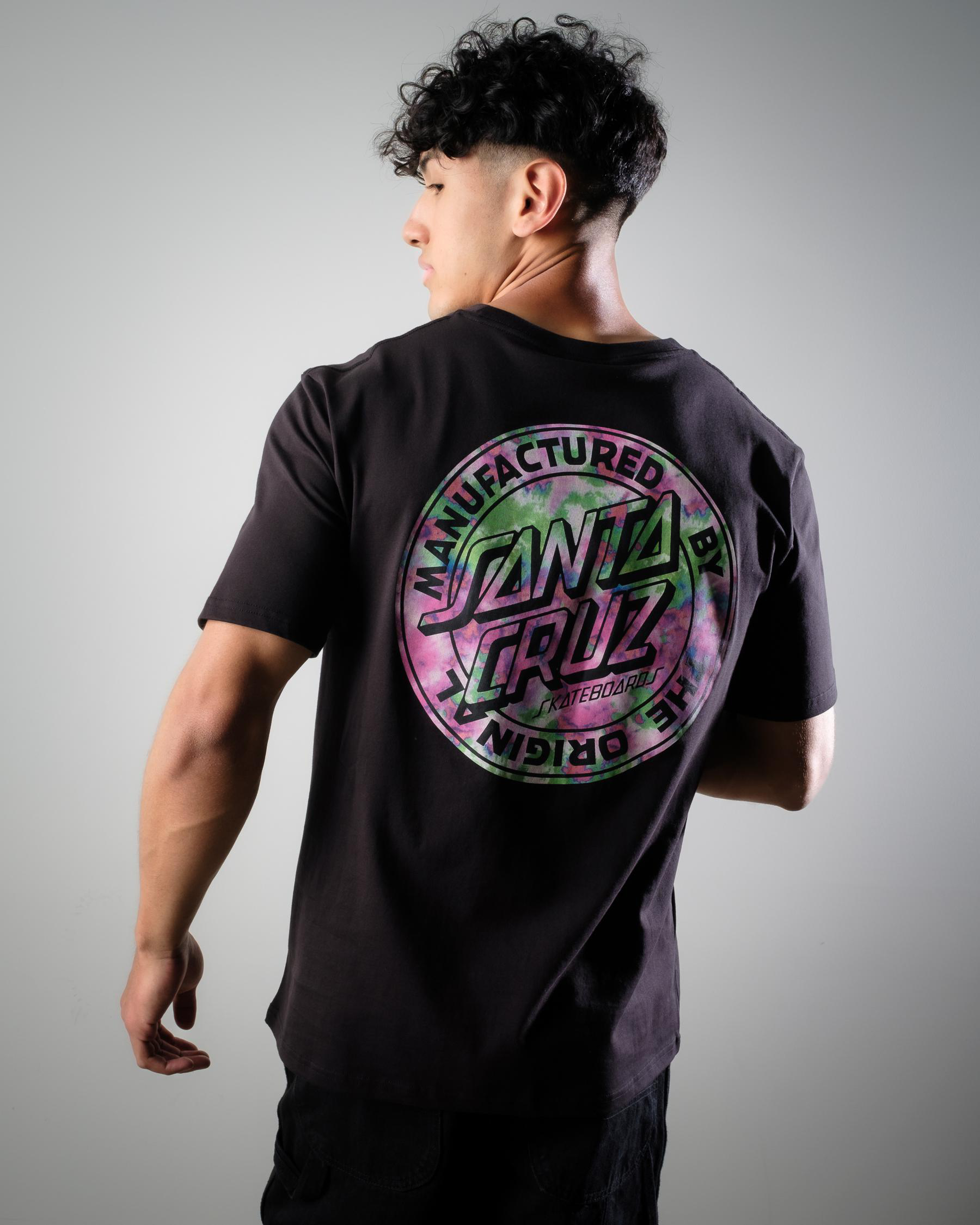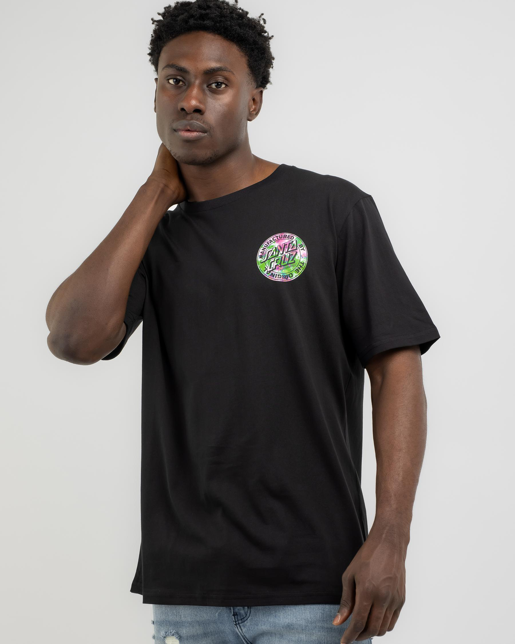 This Santa Cruz Dot Marble T-Shirt in Black features a striking marble print design, perfect for adding a touch of edge to your casual wardrobe.