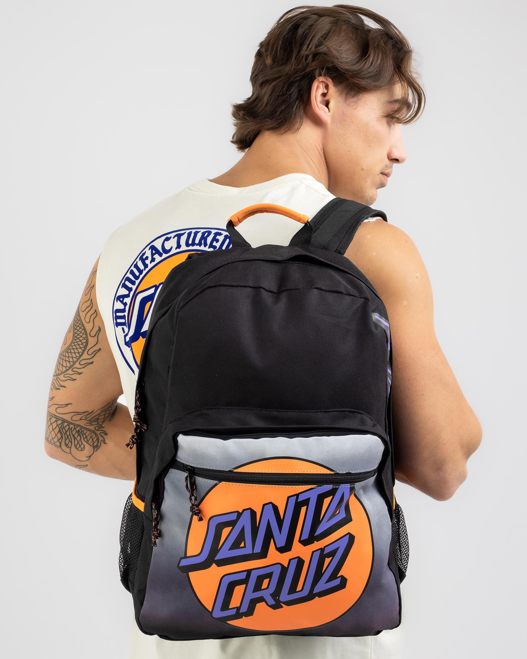 Handle, Padded straps, Padded backpanel, Media compartment, External zipped pocket, Fits A4 sized folders and books, Waterbottle pouch
