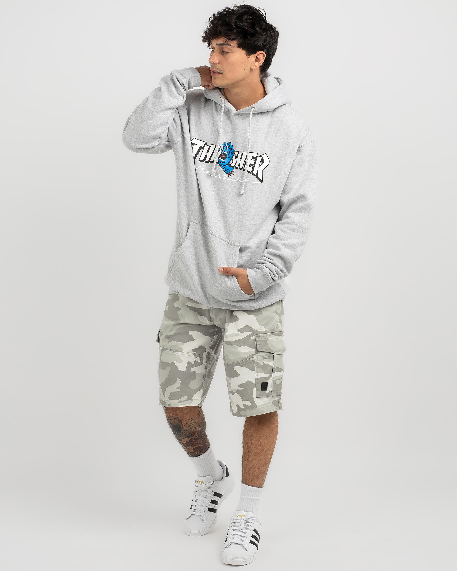 Stay cozy in the Santa Cruz Thrasher Screaming Logo Hoodie in Grey Heather. This iconic hoodie features a bold logo graphic, perfect for adding an edgy touch to your streetwear look.