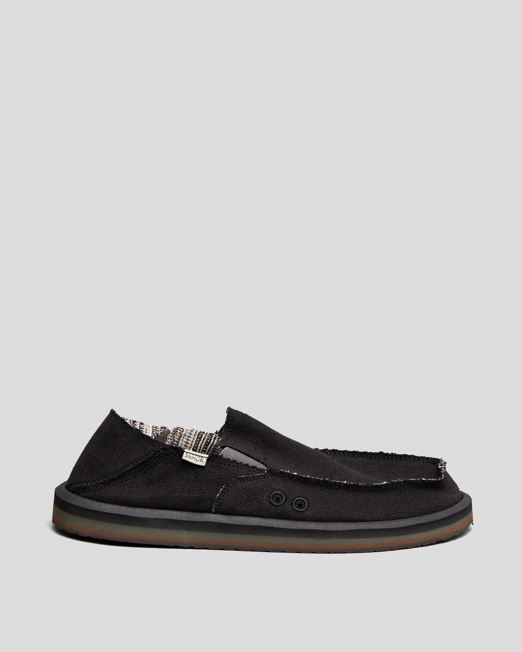 Step out in style with the SANUK Vagabond St Hemp Shoes in sleek black. These versatile shoes are perfect for any casual outfit.