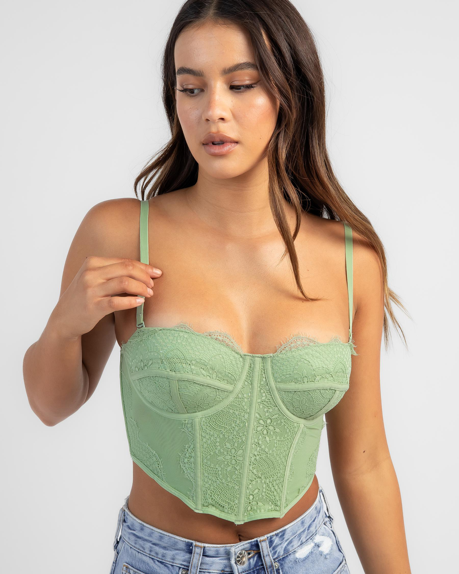 Show off your curves in the Secret Wishes Chicago Corset in Avocado. This sleek corset is perfect for adding a pop of color to your wardrobe. Read more