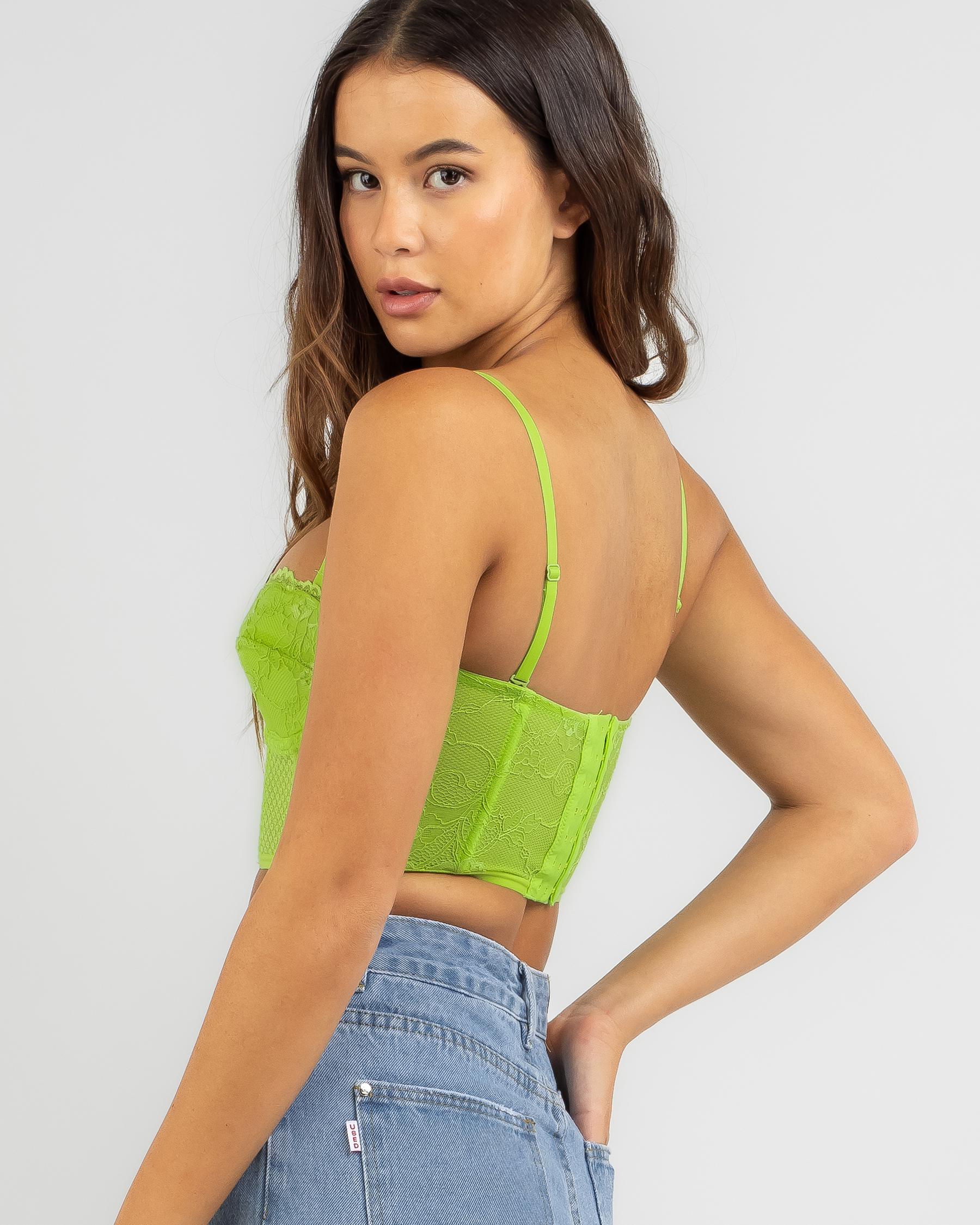 Show off your curves in the Secret Wishes Dreamy Corset in a stunning apple green shade. Perfect for adding a pop of color to your outfit.