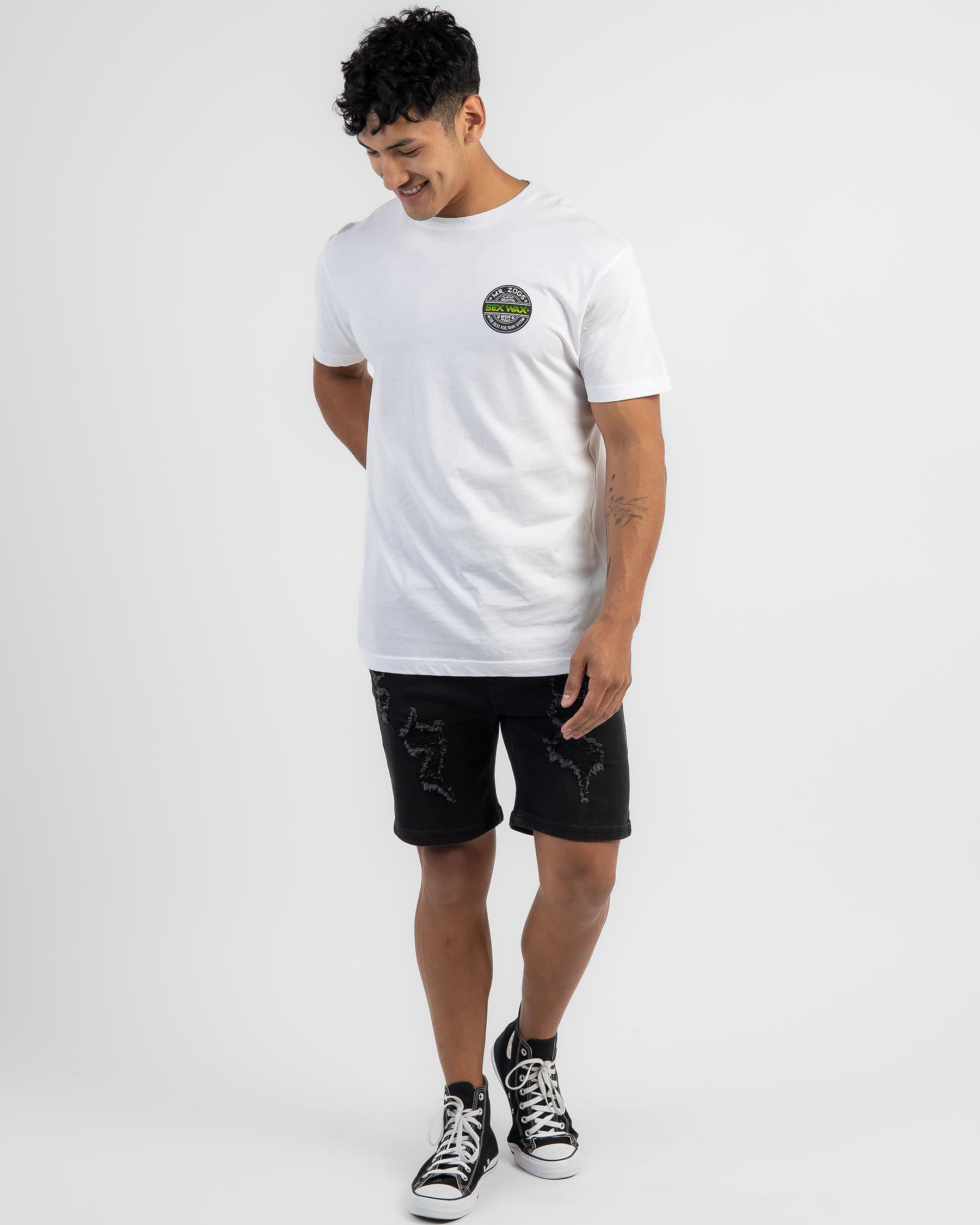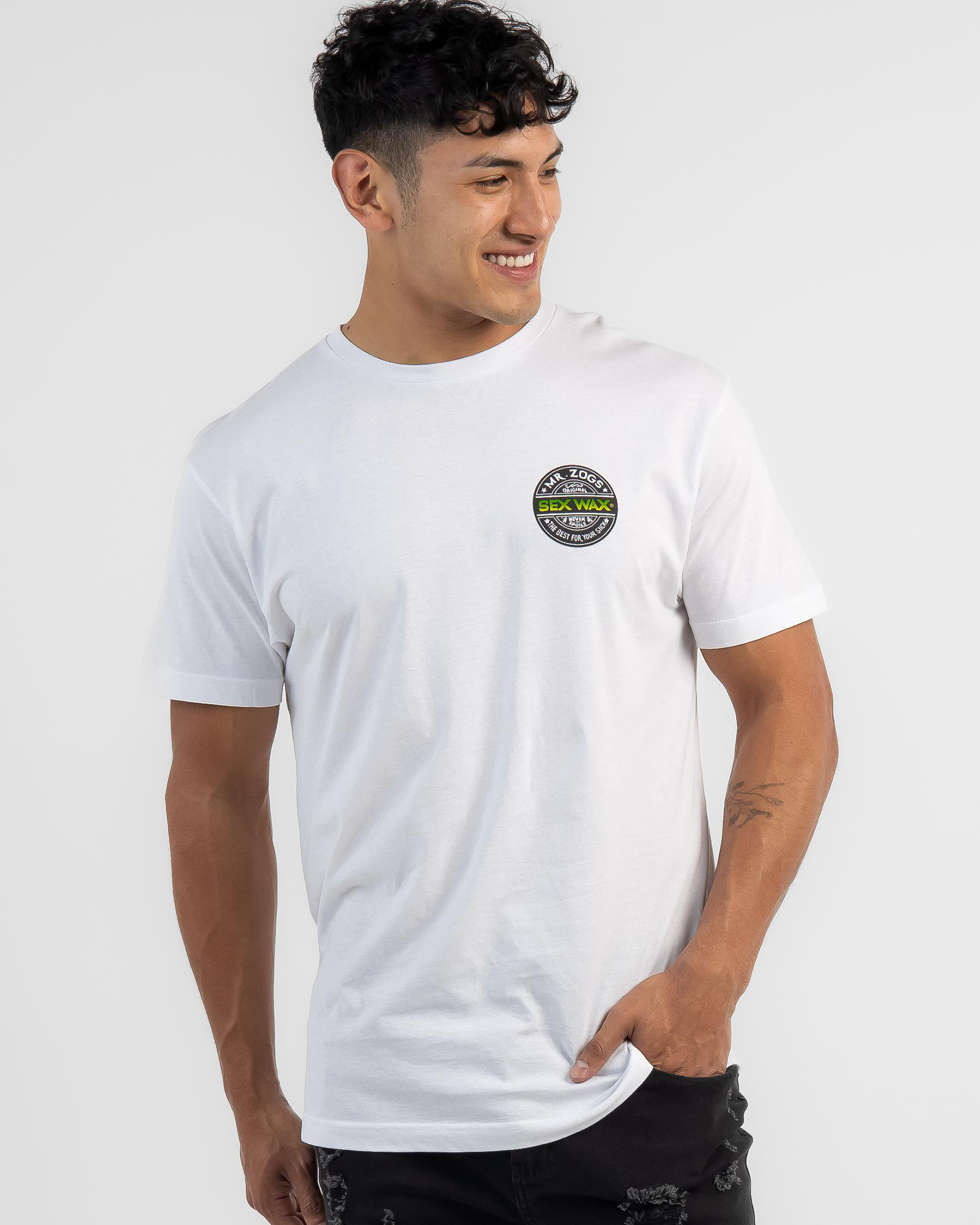 The Sex Wax Word Fade Green T-Shirt in Black features a unique green gradient design, making it a trendy addition to your wardrobe.